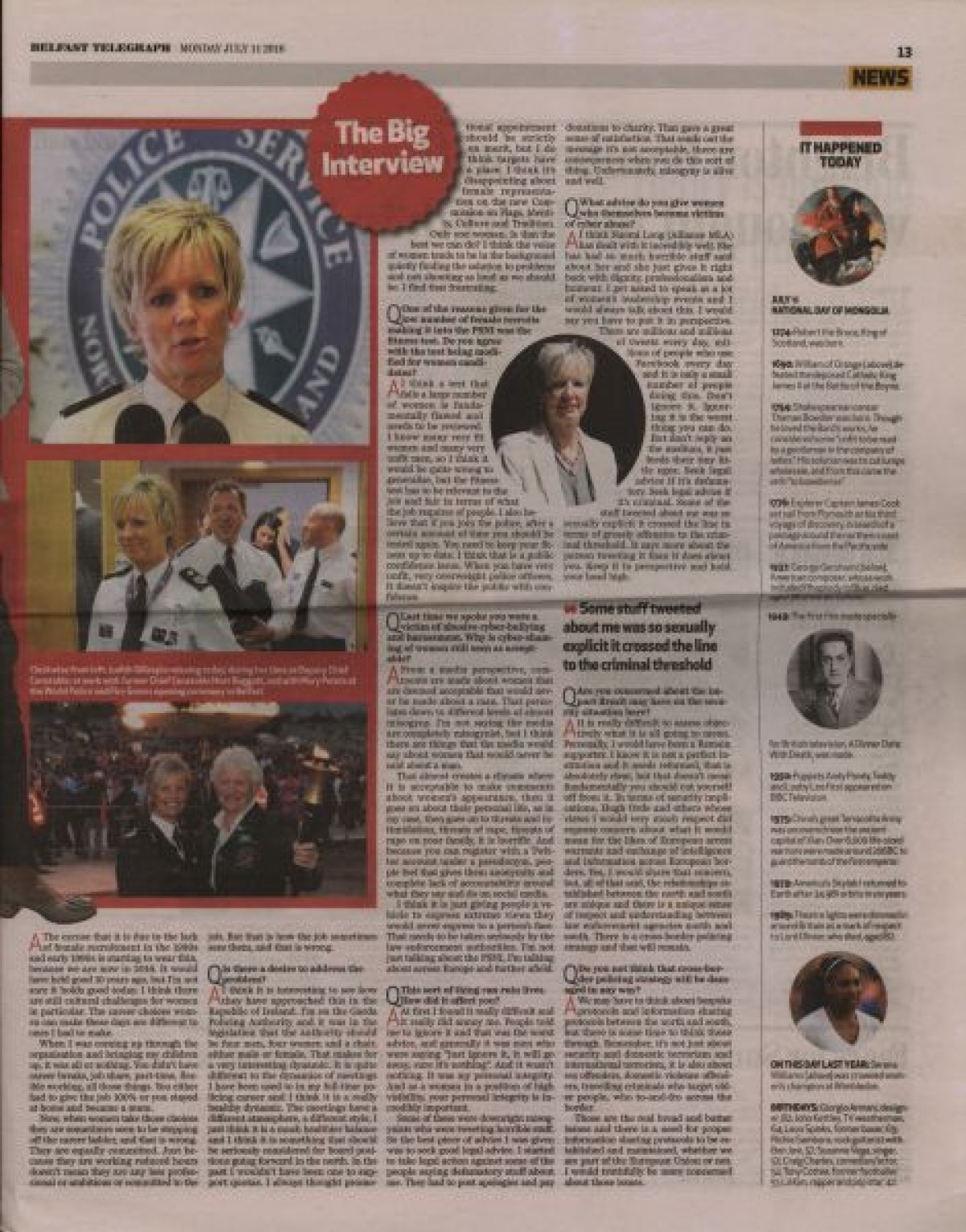 Belfast Telegraph 'I was urged to ignore online trolls, but I took them on and made them pay for their vile abuse. Judith Gillespie, formerly the PSNI's highest ranking woman, talks to Deborah McAleese about life outside force, being targeted on Twitter and her love of new languages.'