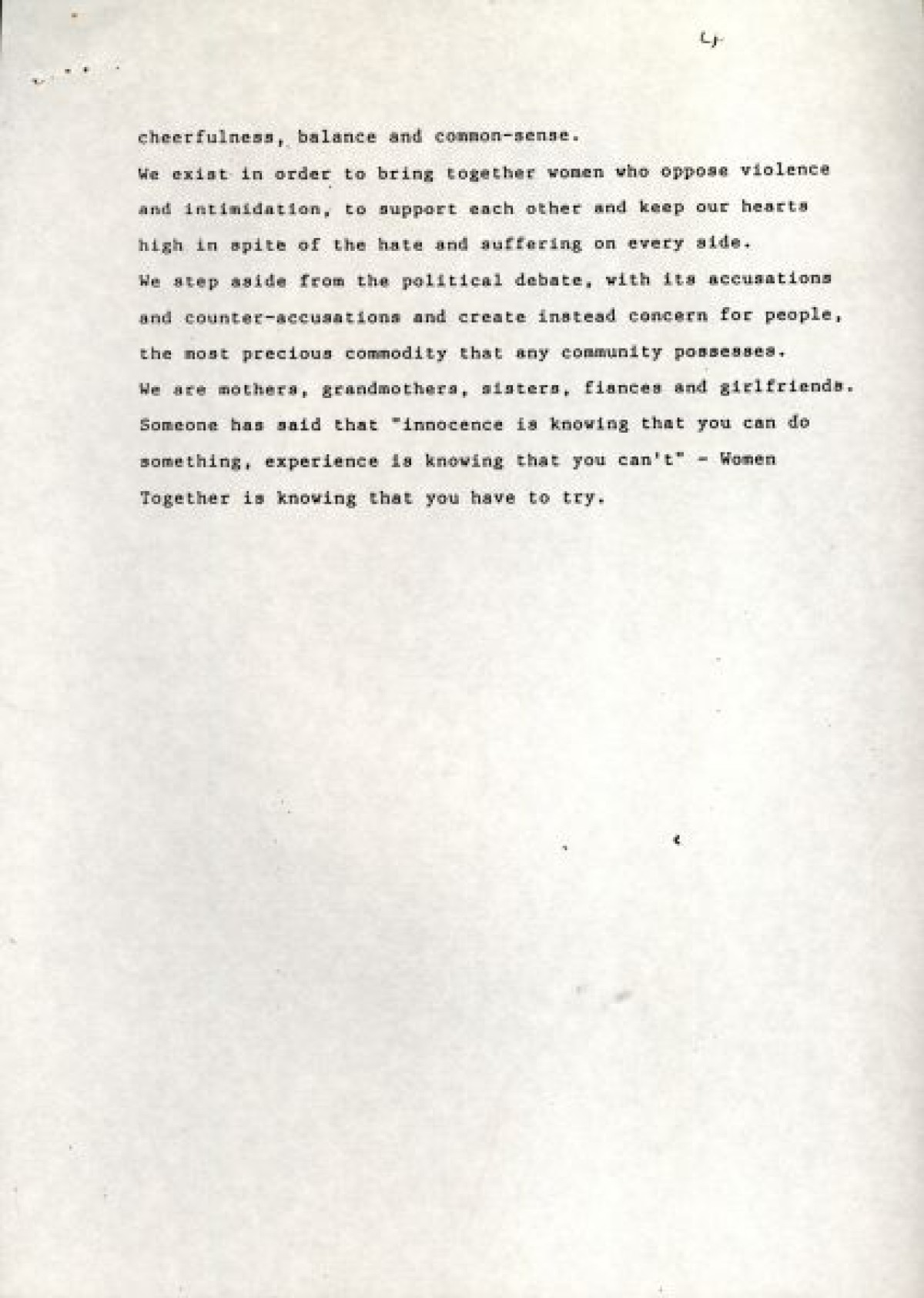 Activism, Communication, Communities, Community, Community Action, Community Care, Community Development, Community Groups, Community Relations, Community Work, Conflict Resolution, Non Violence, Peace, Peace Movement, Reconciliation, Support, Women, Women's Experiences, Women's Groups, Women's Voice