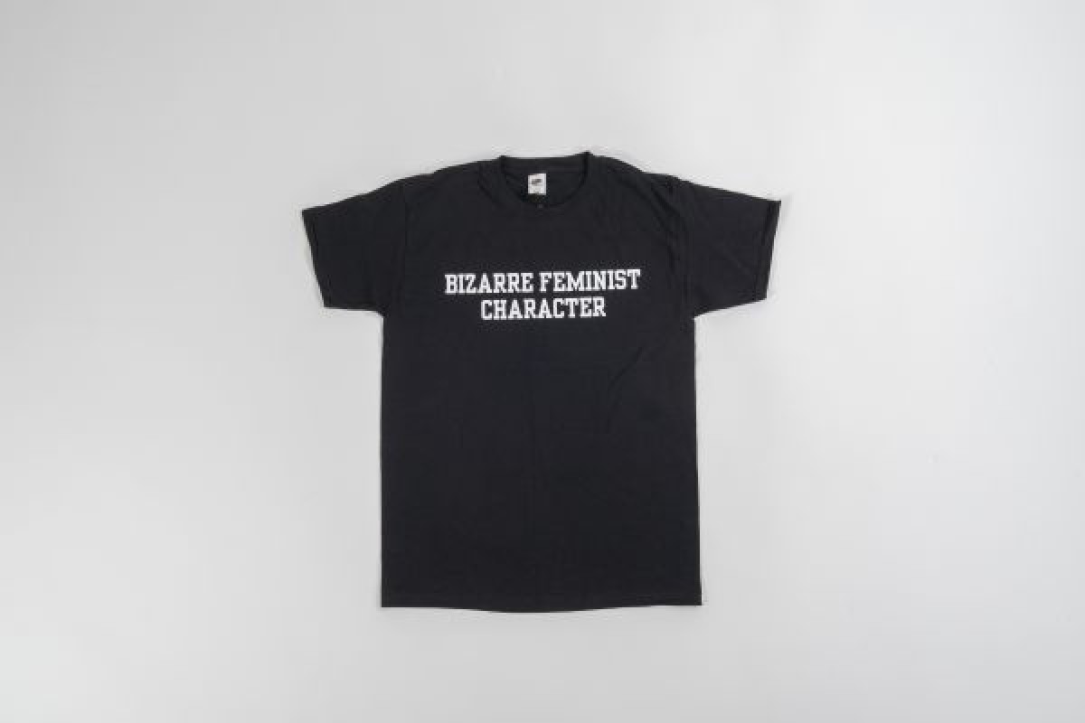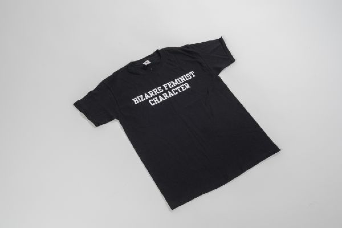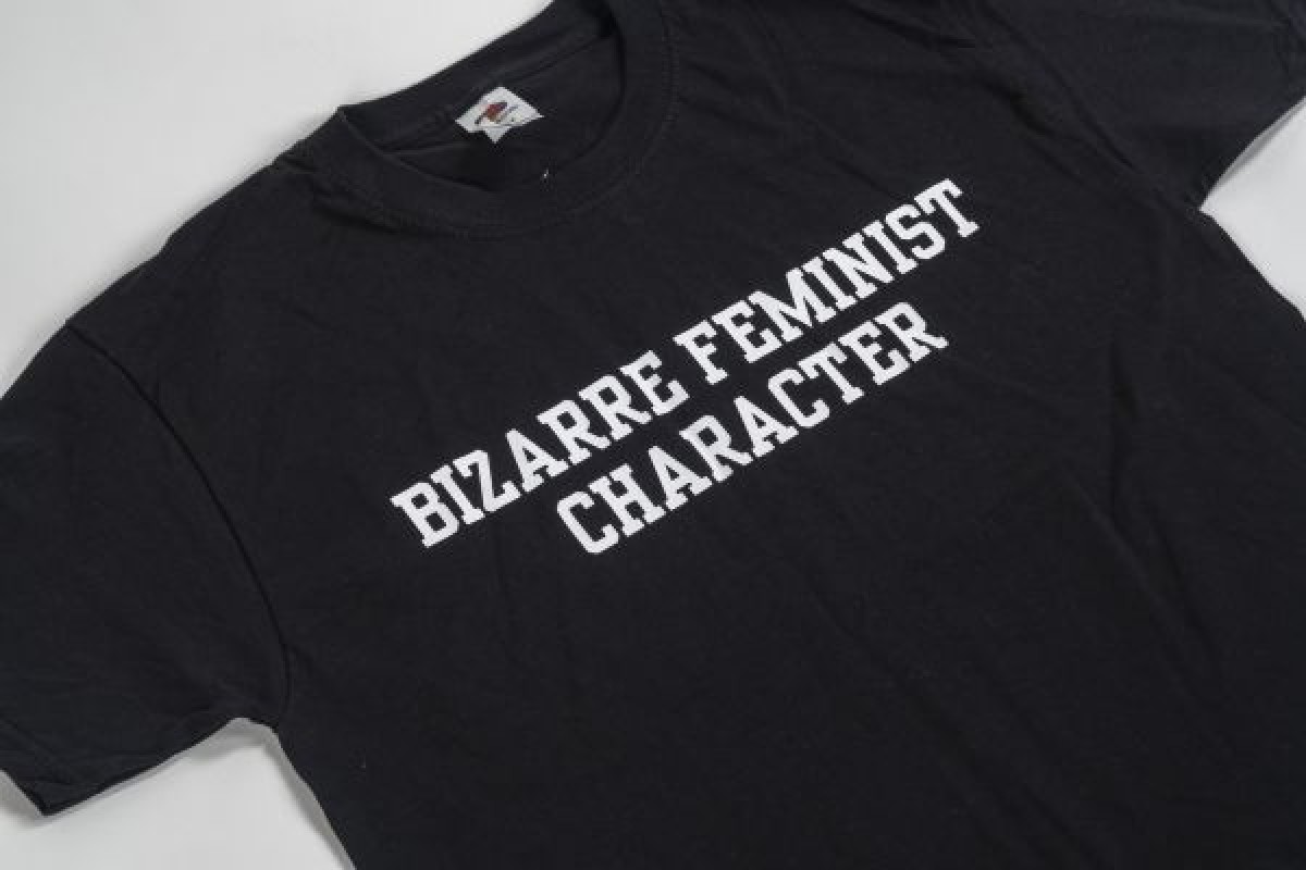 Black T-Shirt with slogan 'Bizarre Feminist Character', based on one of the insults thrown at Rev Karen Sethuraman. She is the first female Baptist Minister in Ireland and is currently a Pastor of SoulSpace, a Peace and Reconciliation hub, based in Belfast. The Rev Karen is also one of the founders of Spectrum - a space set up in Belfast for LGBT+ people of faith.