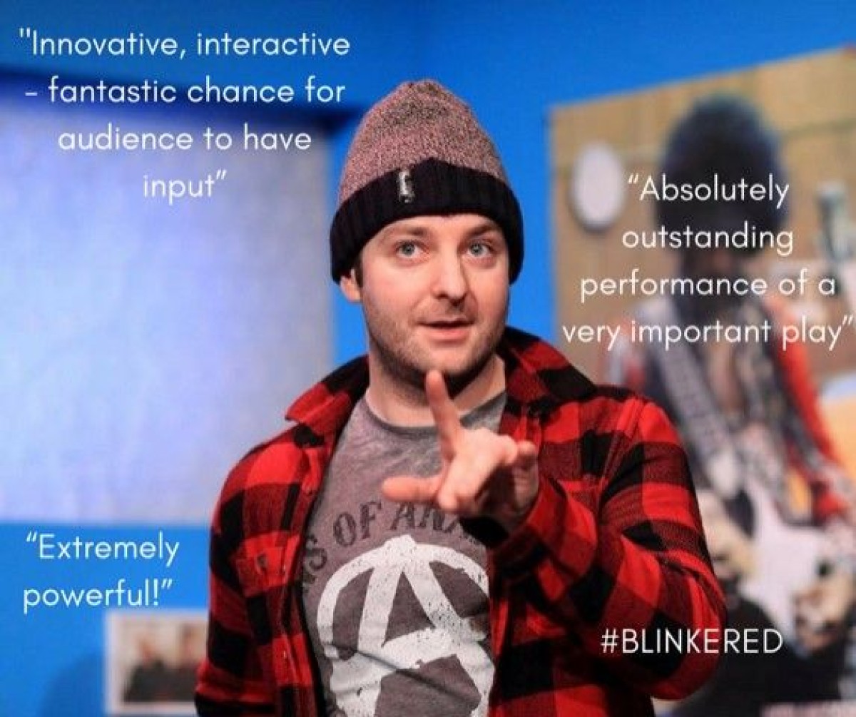 Sole Purpose Productions. ‘Blinkered,’ a play about depression and its impact on the family, was written by Patricia Byrne and developed in association with Prof Siobhan O’Neill, Youthlife, and AWARE NI. was performed at the first Irish Theatre Festival in New York, 2019, where it won the Special Jury Prize. Photographs include actors Patrick McBrearty, Pat Lynch, Cathy Brennan Bradley, and Gemma Walker.