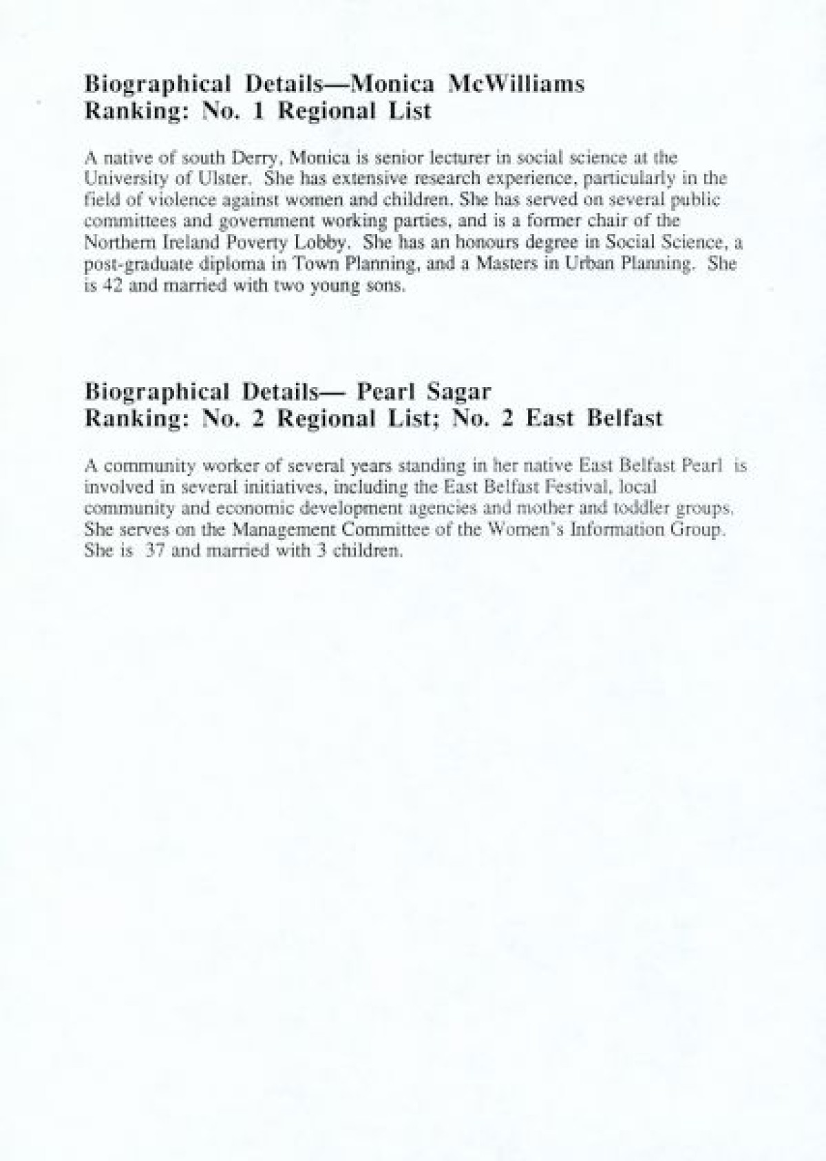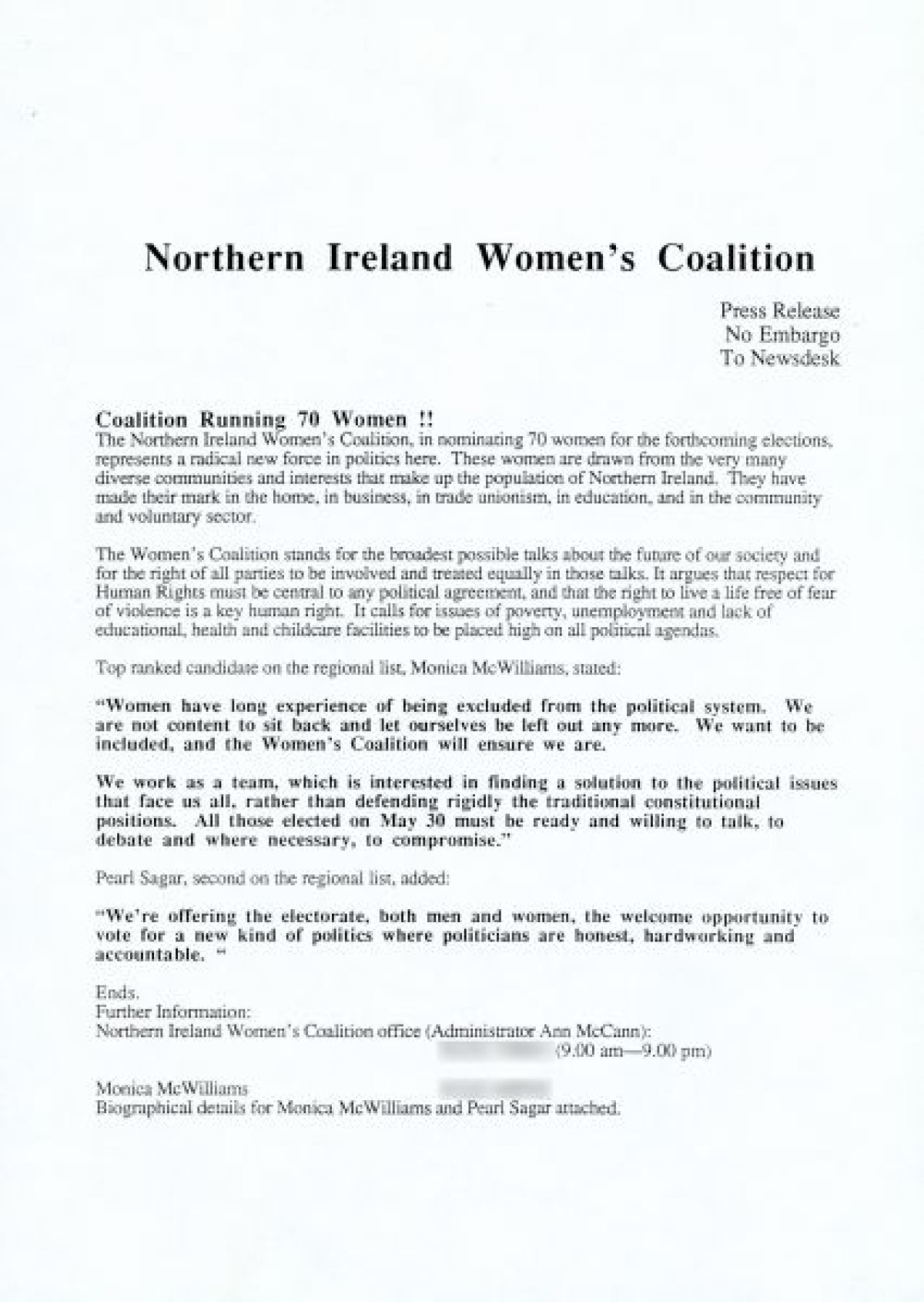 Northern Ireland Political Collection, Northern Ireland Women's Coalition,