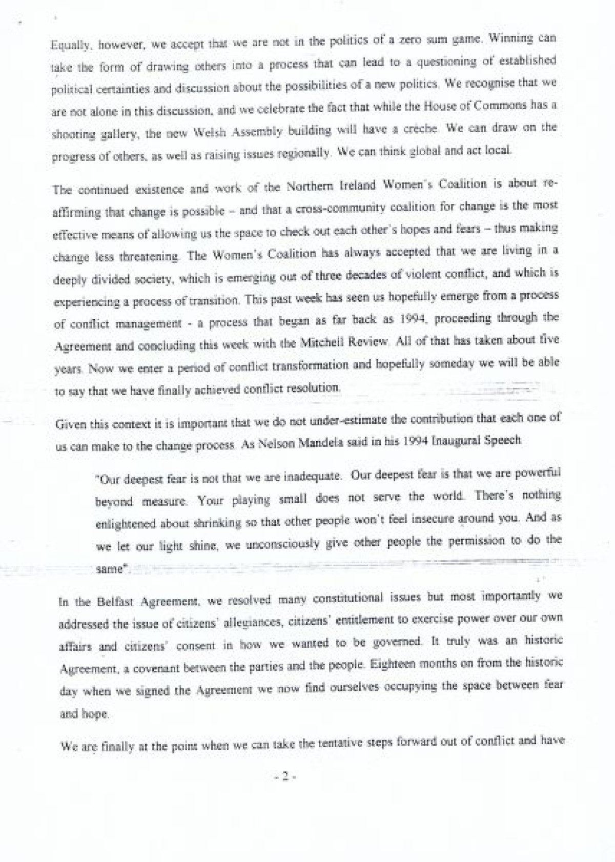 Northern Ireland Political Collection, Northern Ireland Women's Coalition,