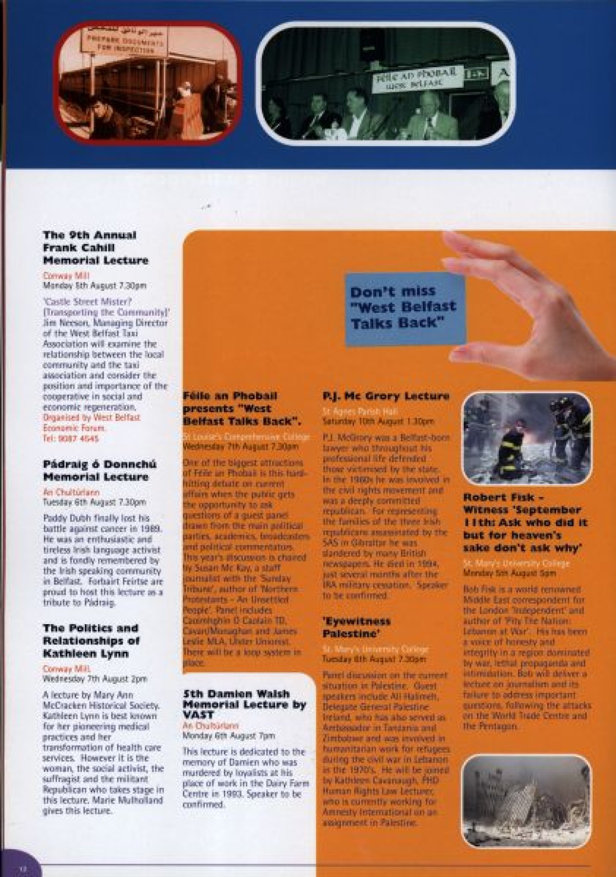 Brown, Veronica, McCullagh, Emily, Woods, Una, Beckett, Mary, Loughran, Kelly, McIlwaine, Gabrielle, Jackson, Carol, Muldoon, Tina, McKernan, Margaret, Poland, Christine, Mairead Farrell, Susan McKay, Pam Brighton, Marie Mulholland