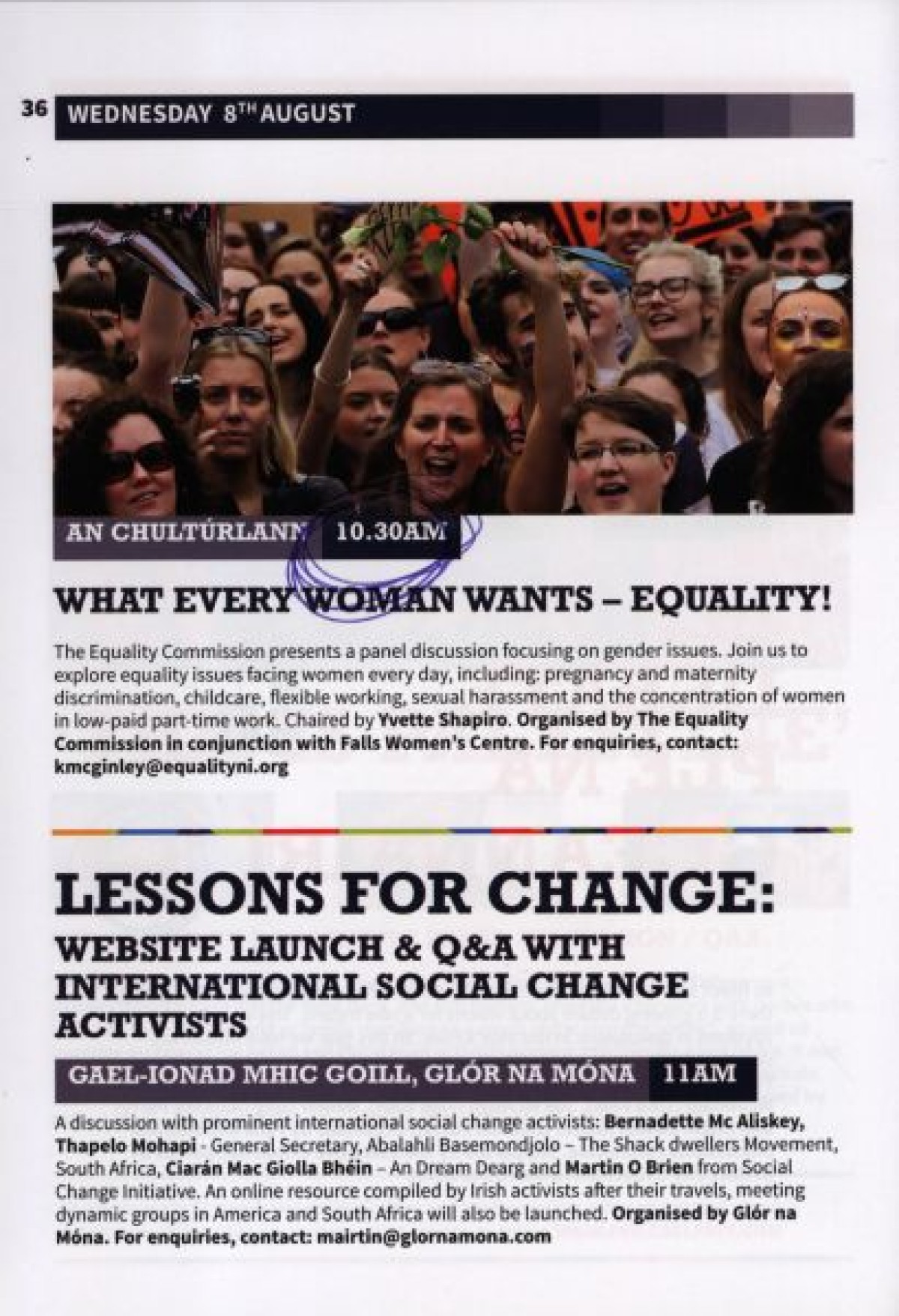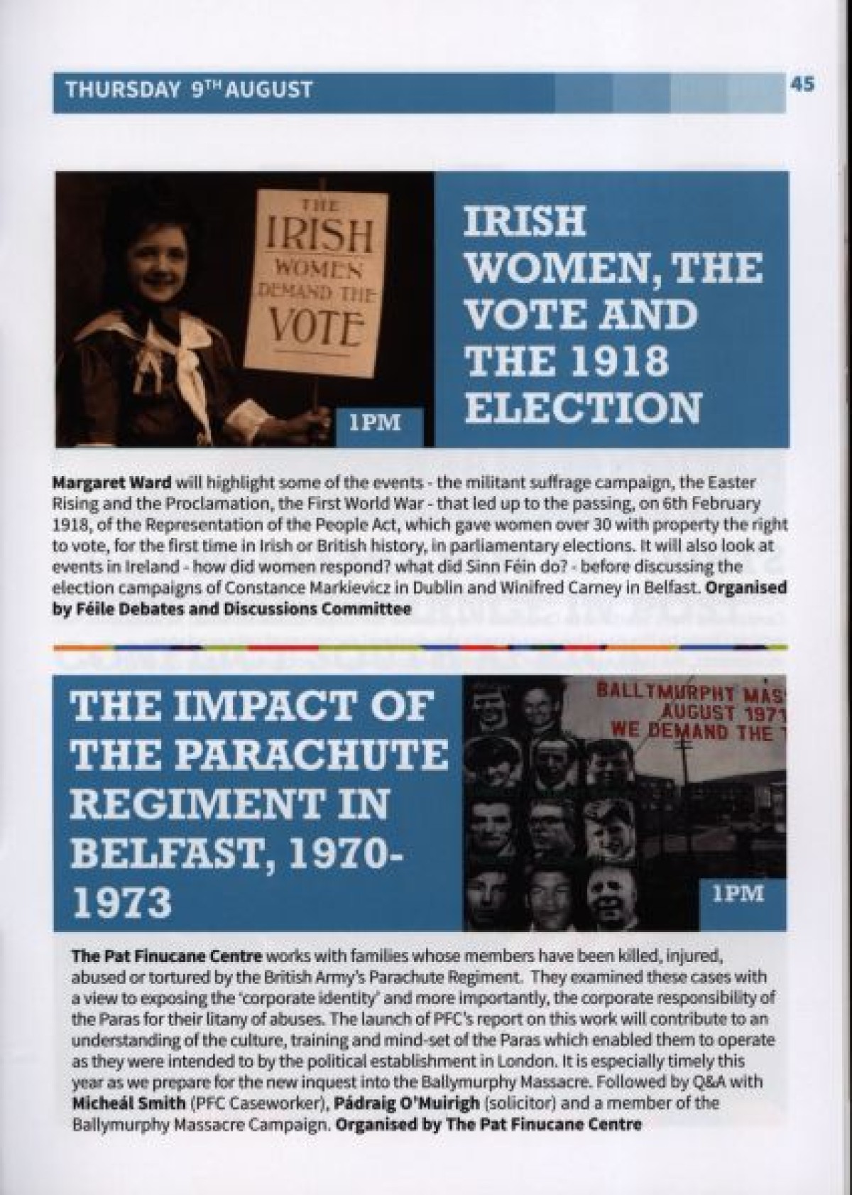 Irish Language, Festival, Abuse, Women's Issues, Women's History, Prisoners, Abortion, Civil Rights, Human Rights, Party Politics, Political Parties, Politics