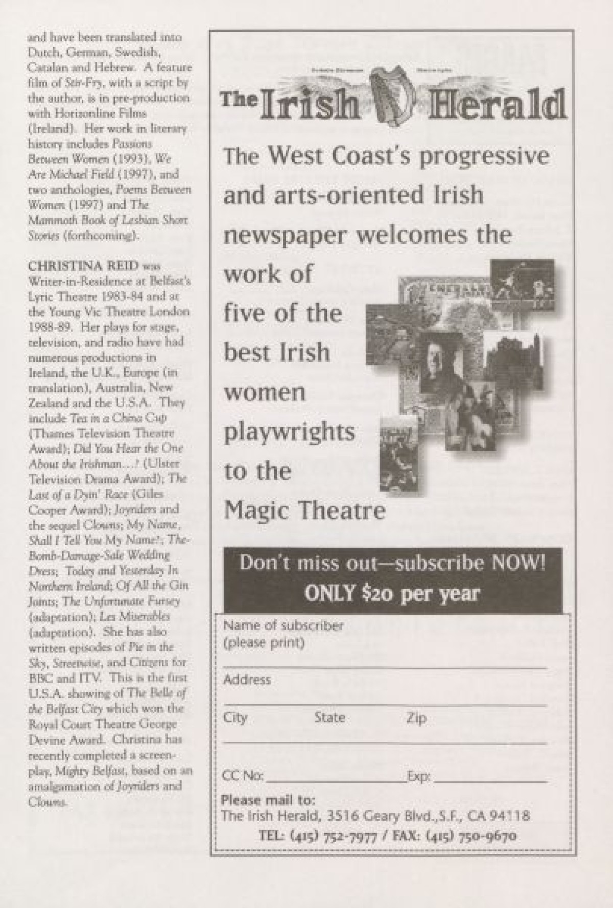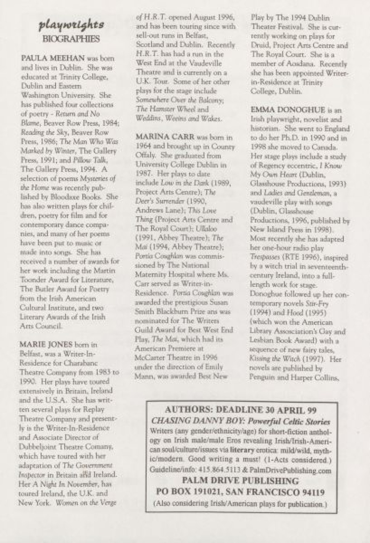 Christina Reid, Meehan, Paula, Carr, Marina, Marie Jones, Donoghue, Emma