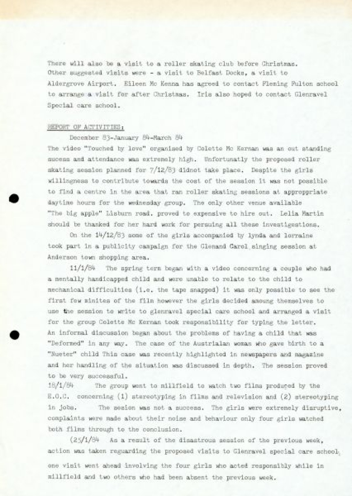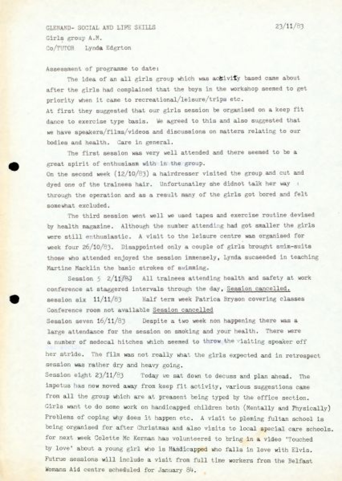 An 'Assessment of programme to date' for detailing and analysing social and life skills activity session on health, work, children etc. Participants in conclusion ultimately conclude they would prefer a mixed sex group.