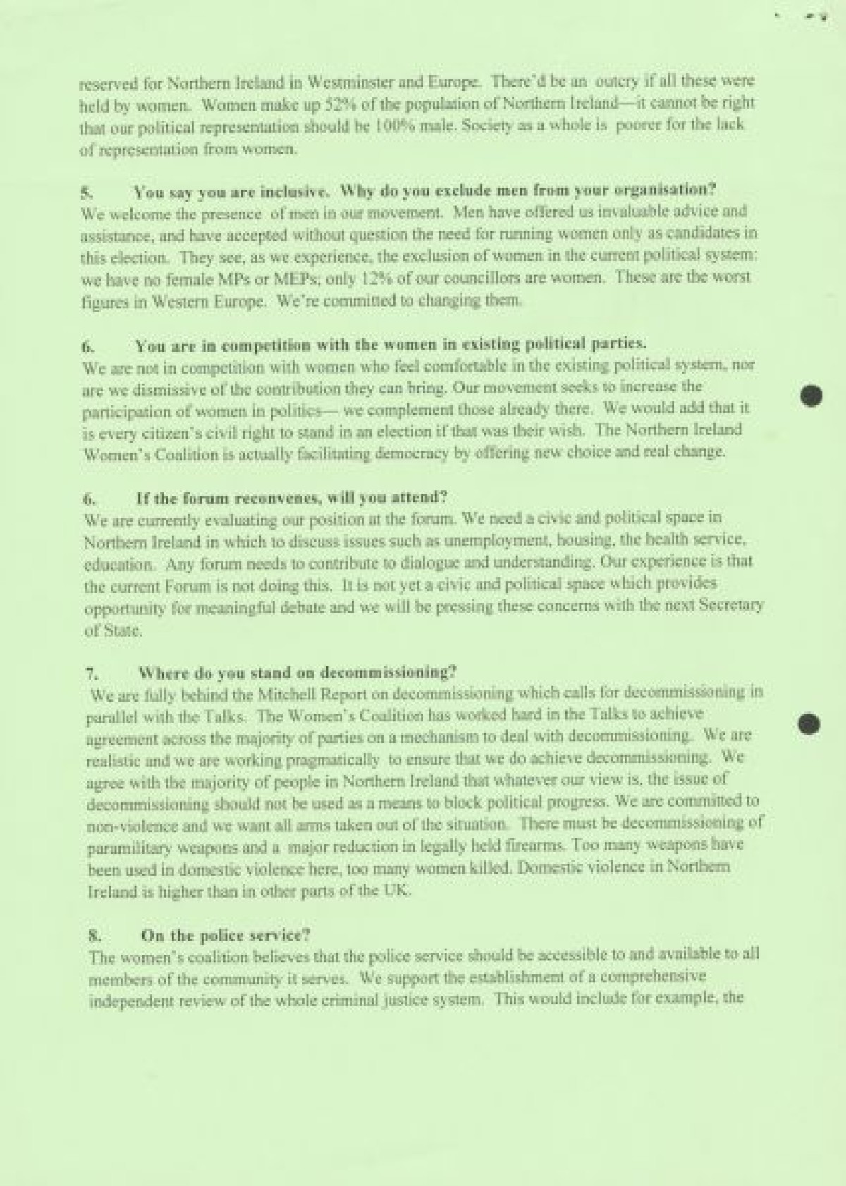Northern Ireland Political Collection, Northern Ireland Women's Coalition,