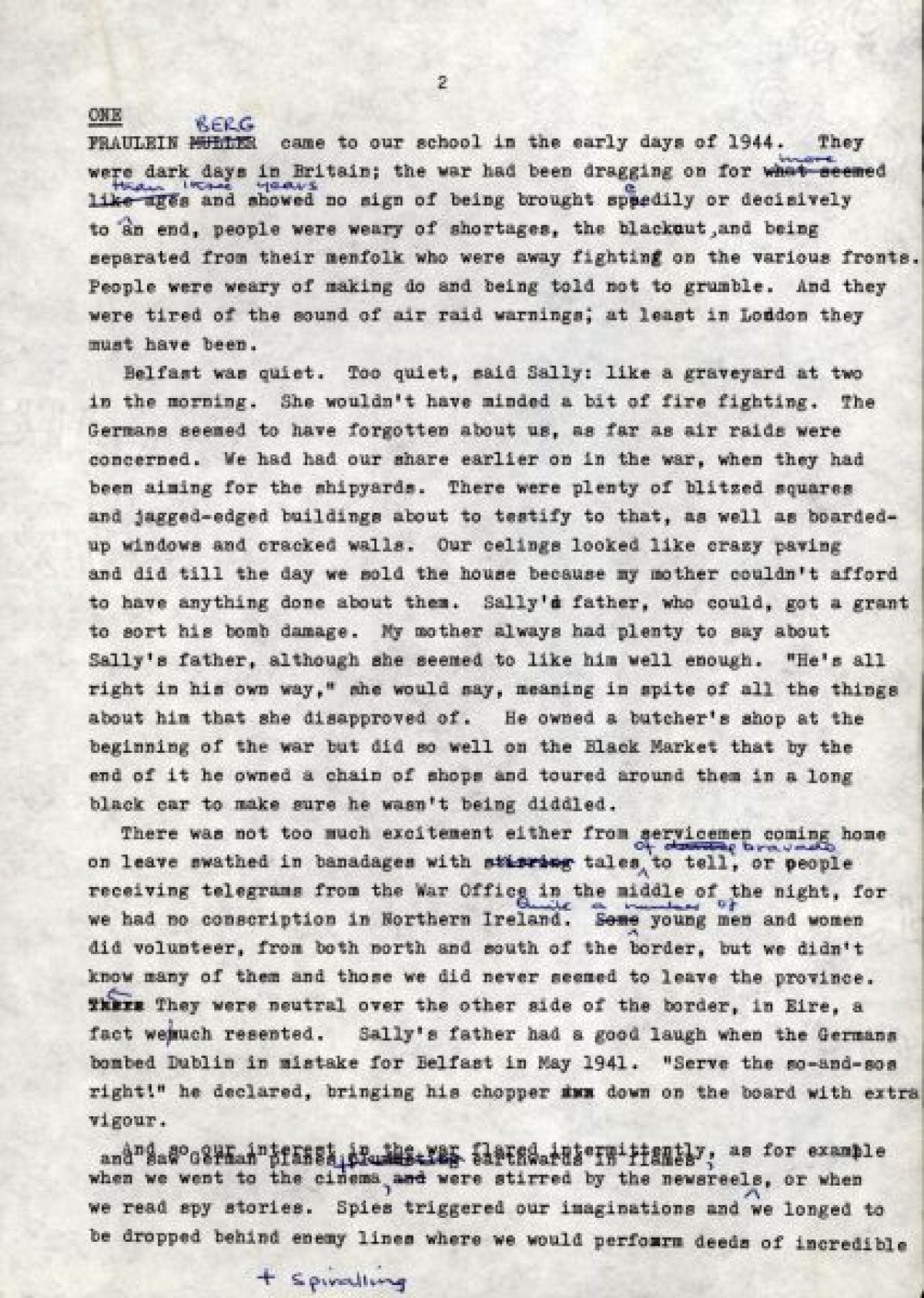 The File on Fraulein Berg; by Joan Lingard dealing with topics of stereotypes, alienation, and prejudice, in a young adults novel about a new German teacher who arrives at a school in wartime Belfast.