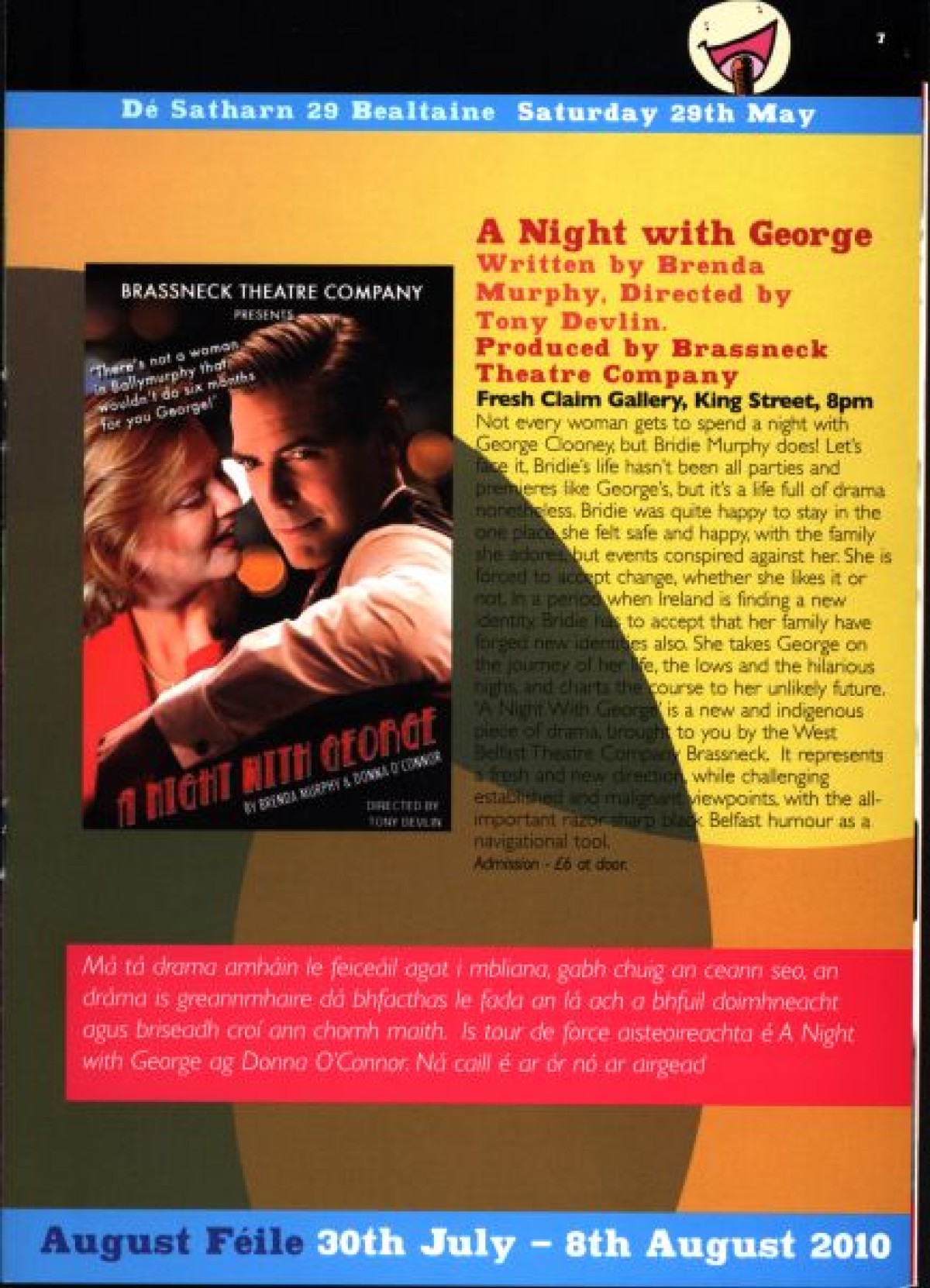 Brochure, Laugh at the Bank: Féile Comedy Festival, advertising 'A Night with George', written by Brenda Murphy and Donna O'Connor, produced by Brassneck Theatre Company, 2010