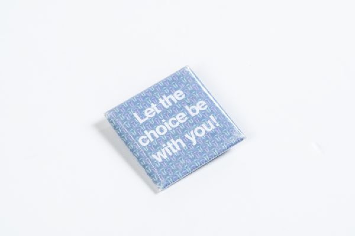 Alliance for Choice pro choice badge: text 'Let the choice be with you'