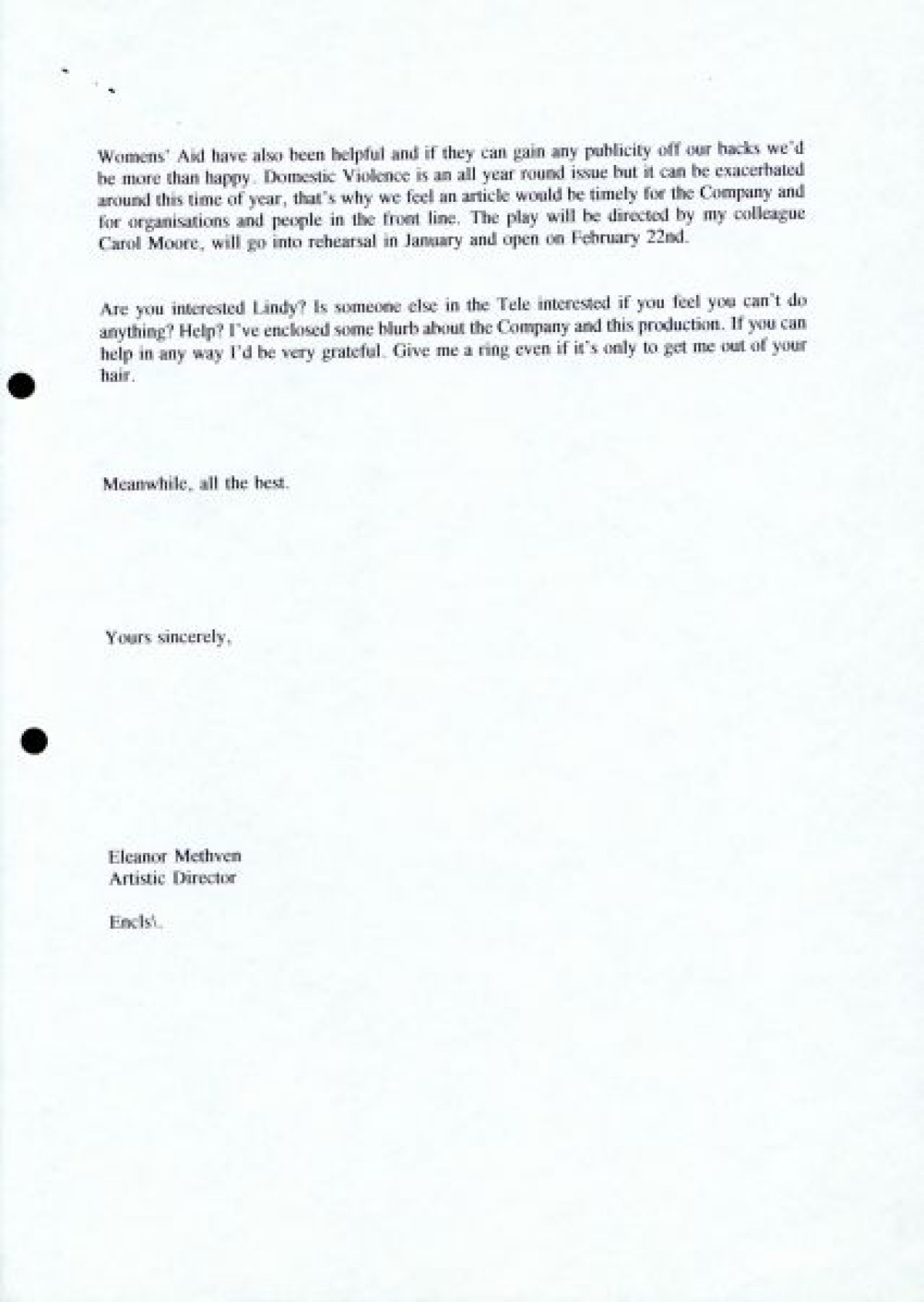 Media, Funding, Theatre, Letter, Art, Artists, Arts, Performance, Drama, Domestic Violence