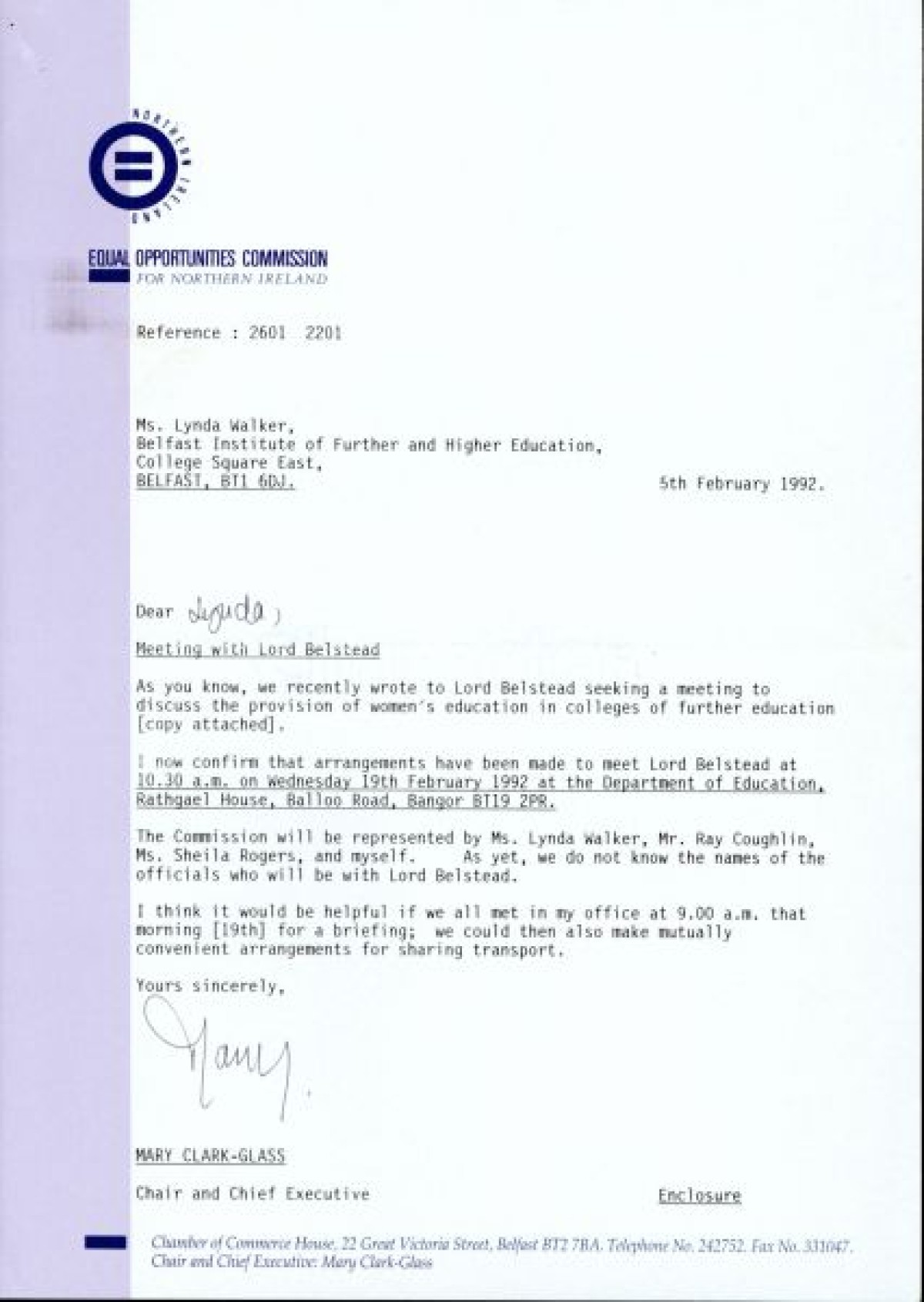 Equal Opportunities Commission (EOC) to Lynda Walker of the