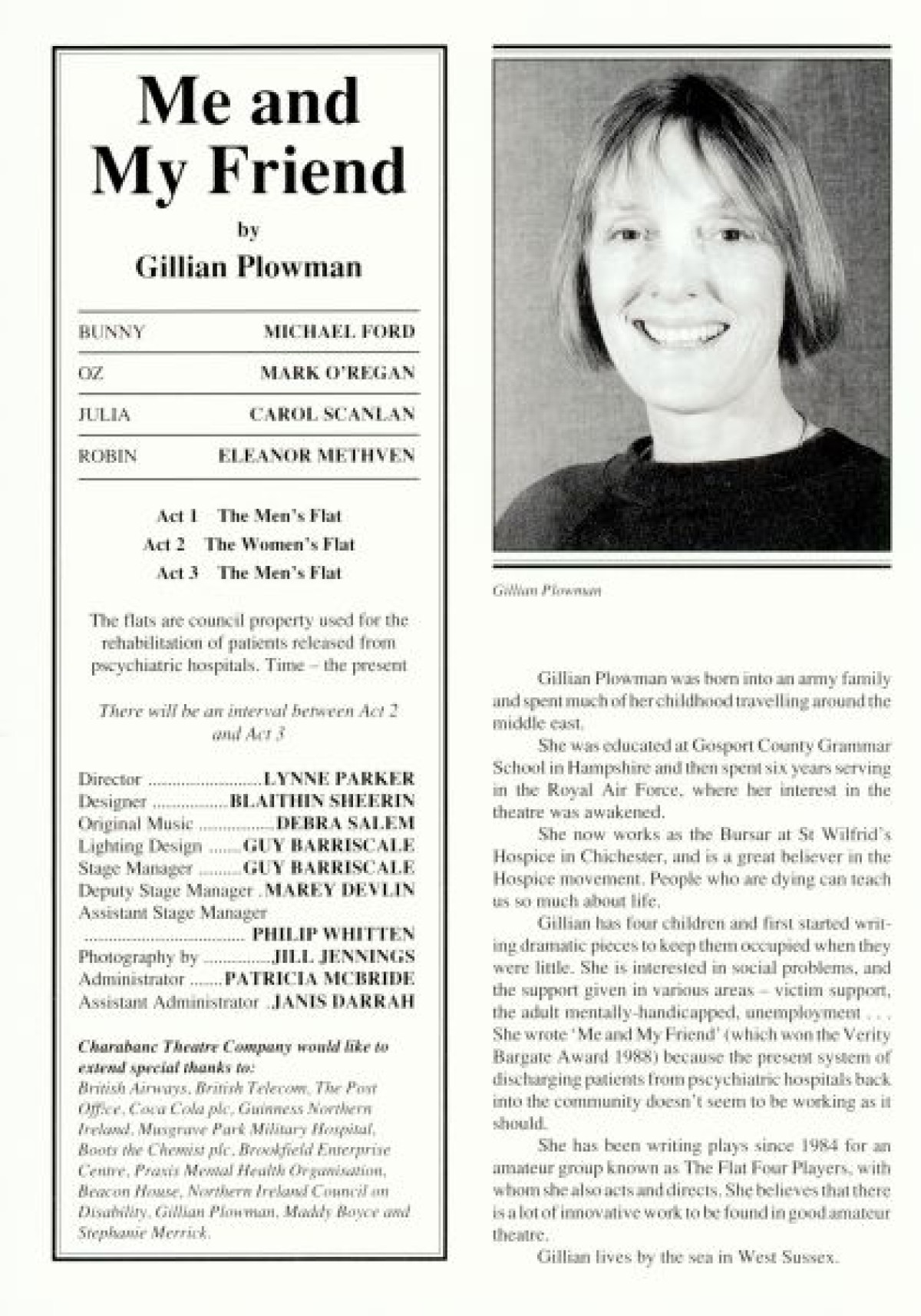 Programme for 'Me and My Friend' by playwright Gillian Plowman. Produced by the
