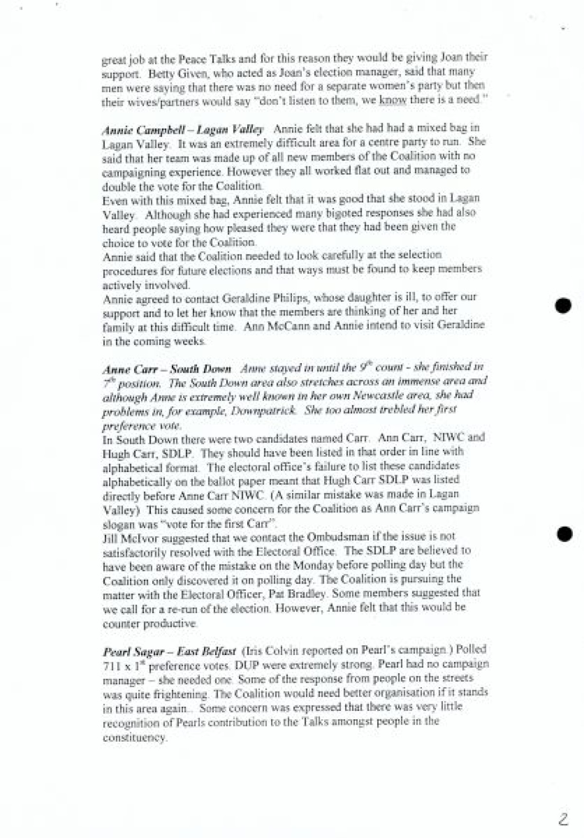 Northern Ireland Political Collection, Northern Ireland Women's Coalition,