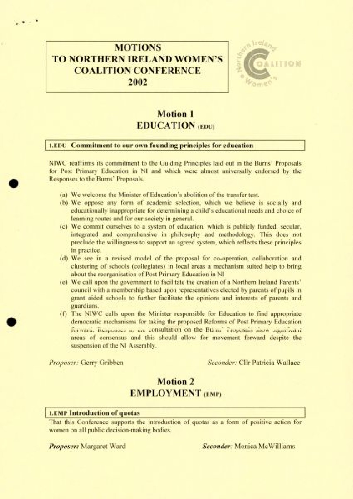 Northern Ireland Political Collection, Northern Ireland Women's Coalition,