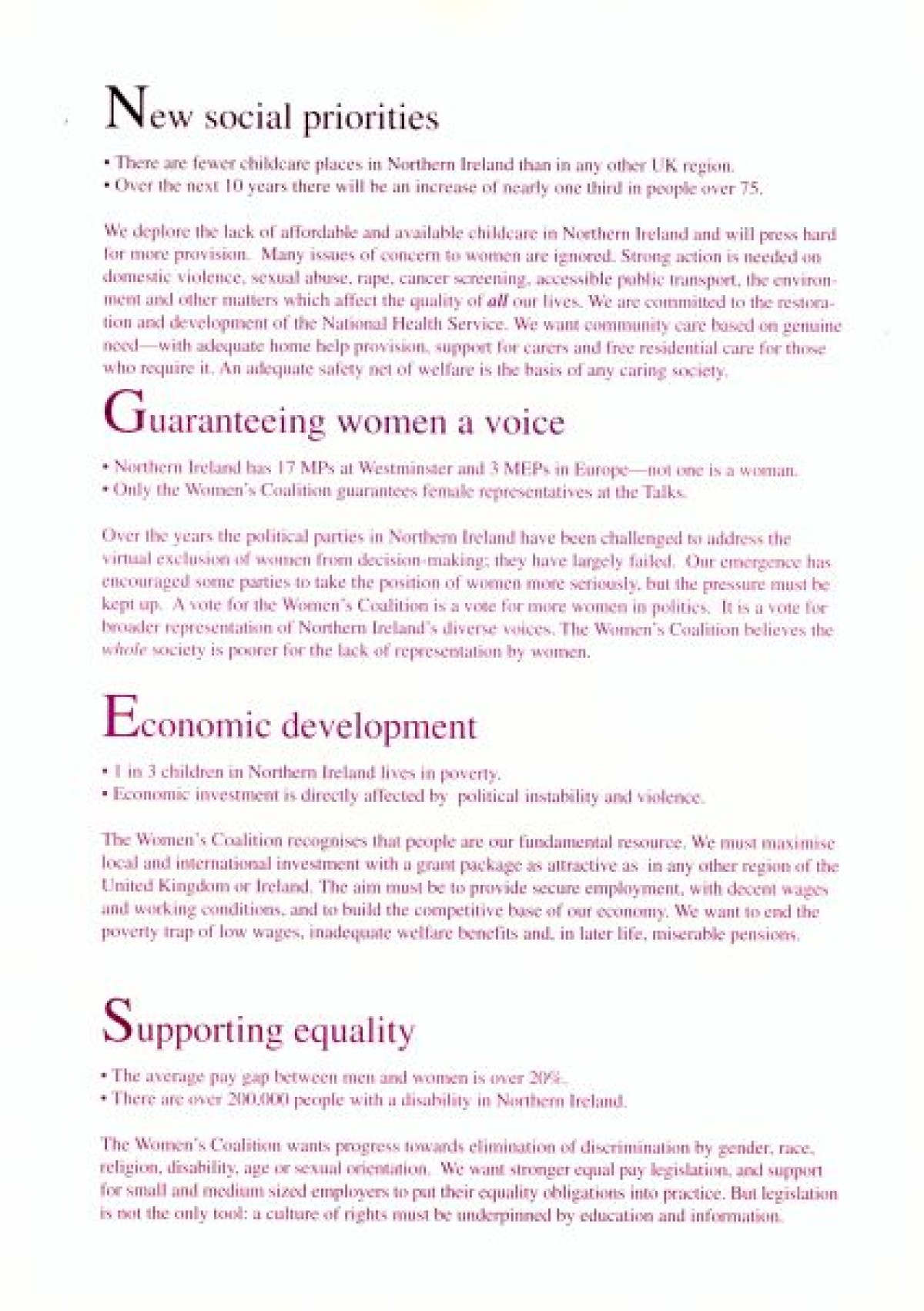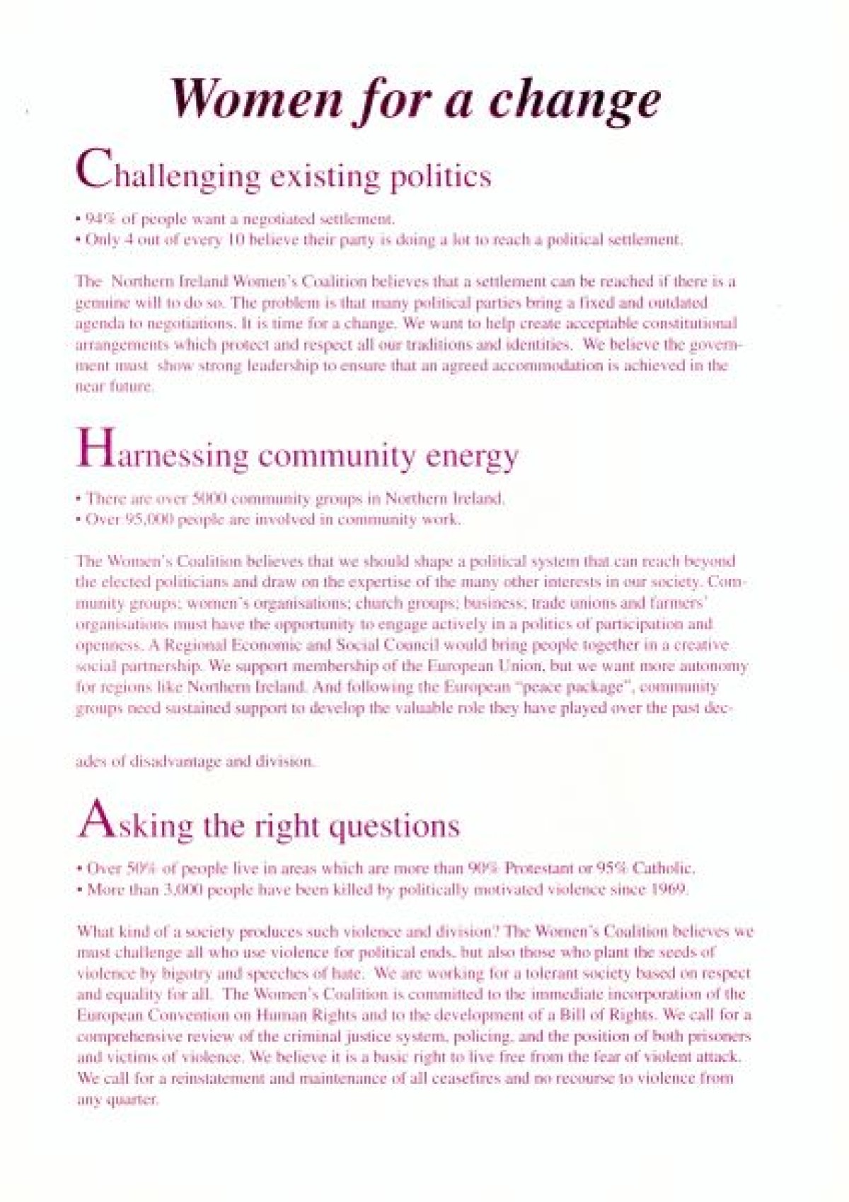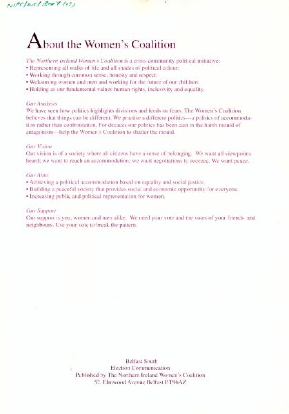 Northern Ireland Political Collection, Northern Ireland Women's Coalition,