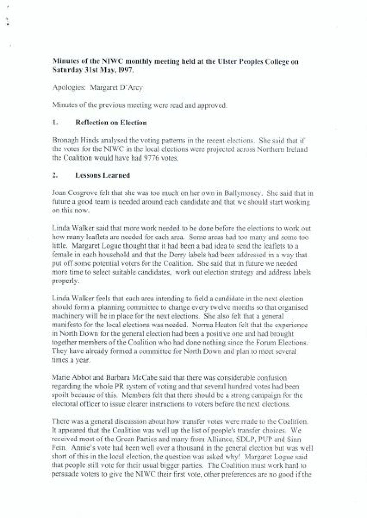 Northern Ireland Political Collection, Northern Ireland Women's Coalition,