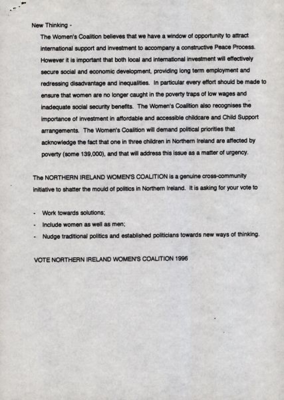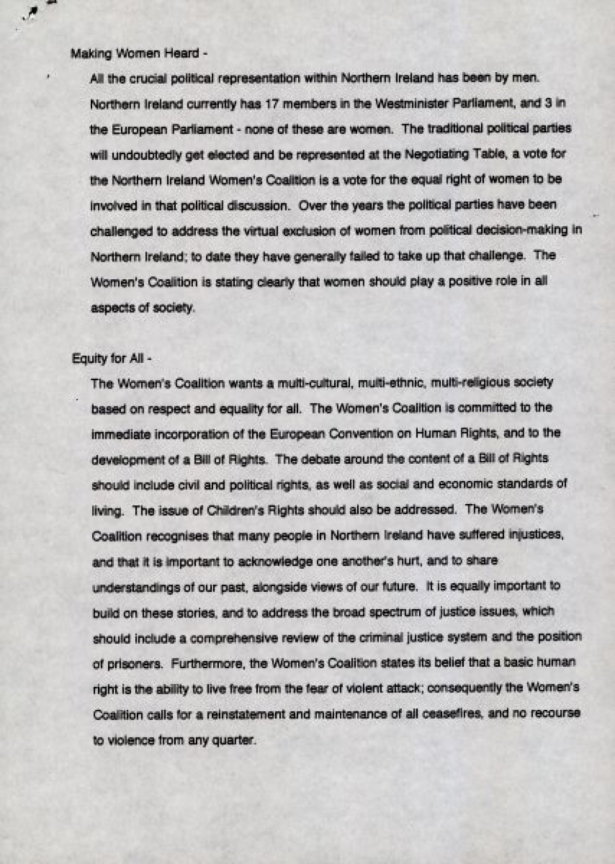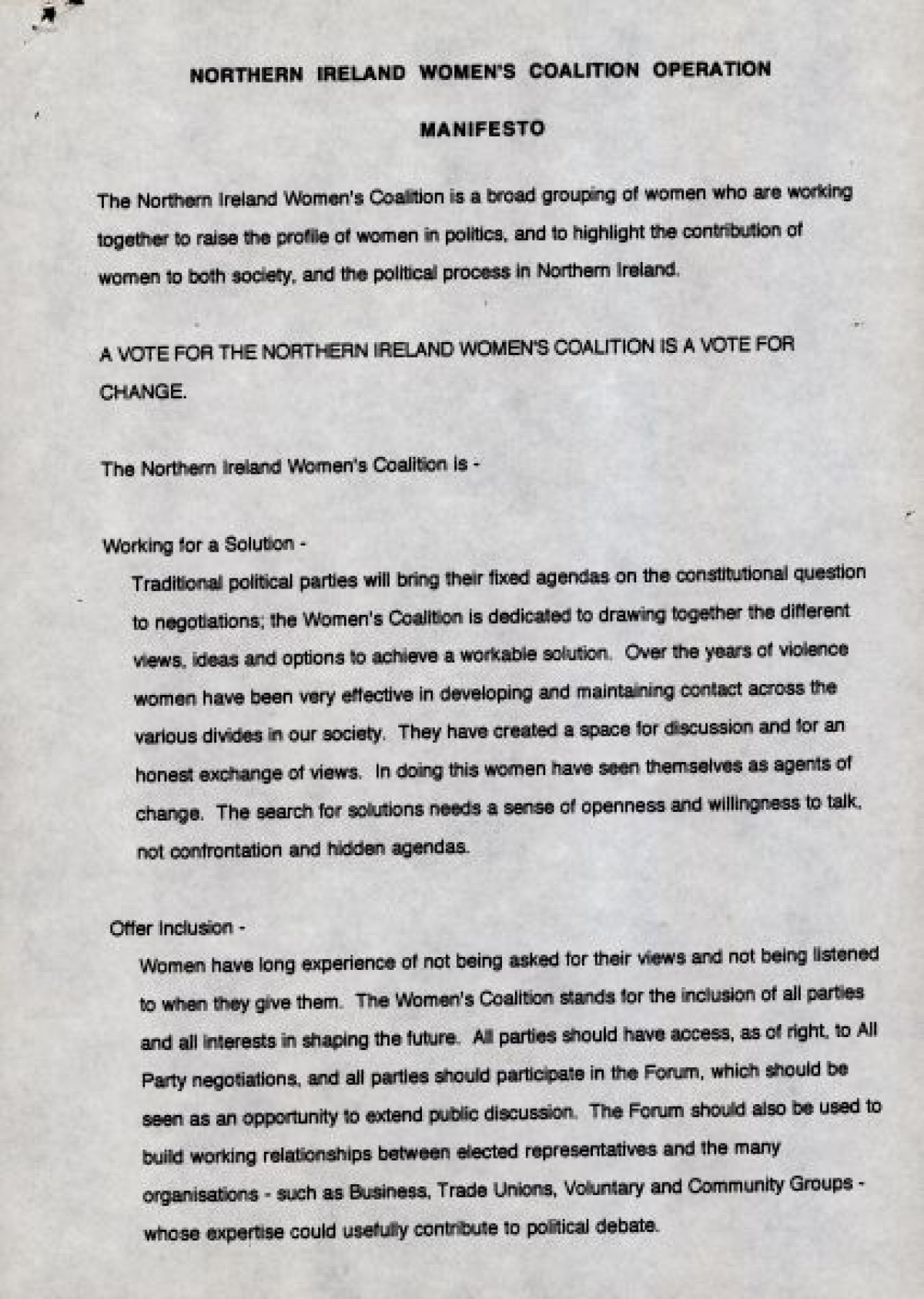Northern Ireland Political Collection, Northern Ireland Women's Coalition,