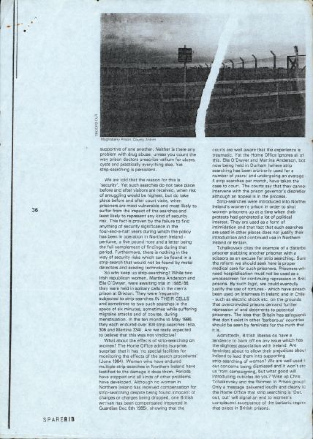 Article responding to ex-prisoner and campaigner Chris Tchaikovsky, regarding strip-searching in prisons. Published: