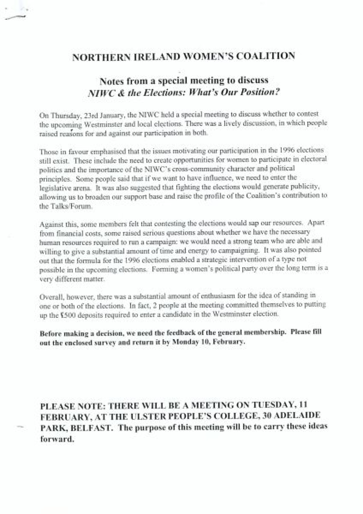Northern Ireland Political Collection, Northern Ireland Women's Coalition,