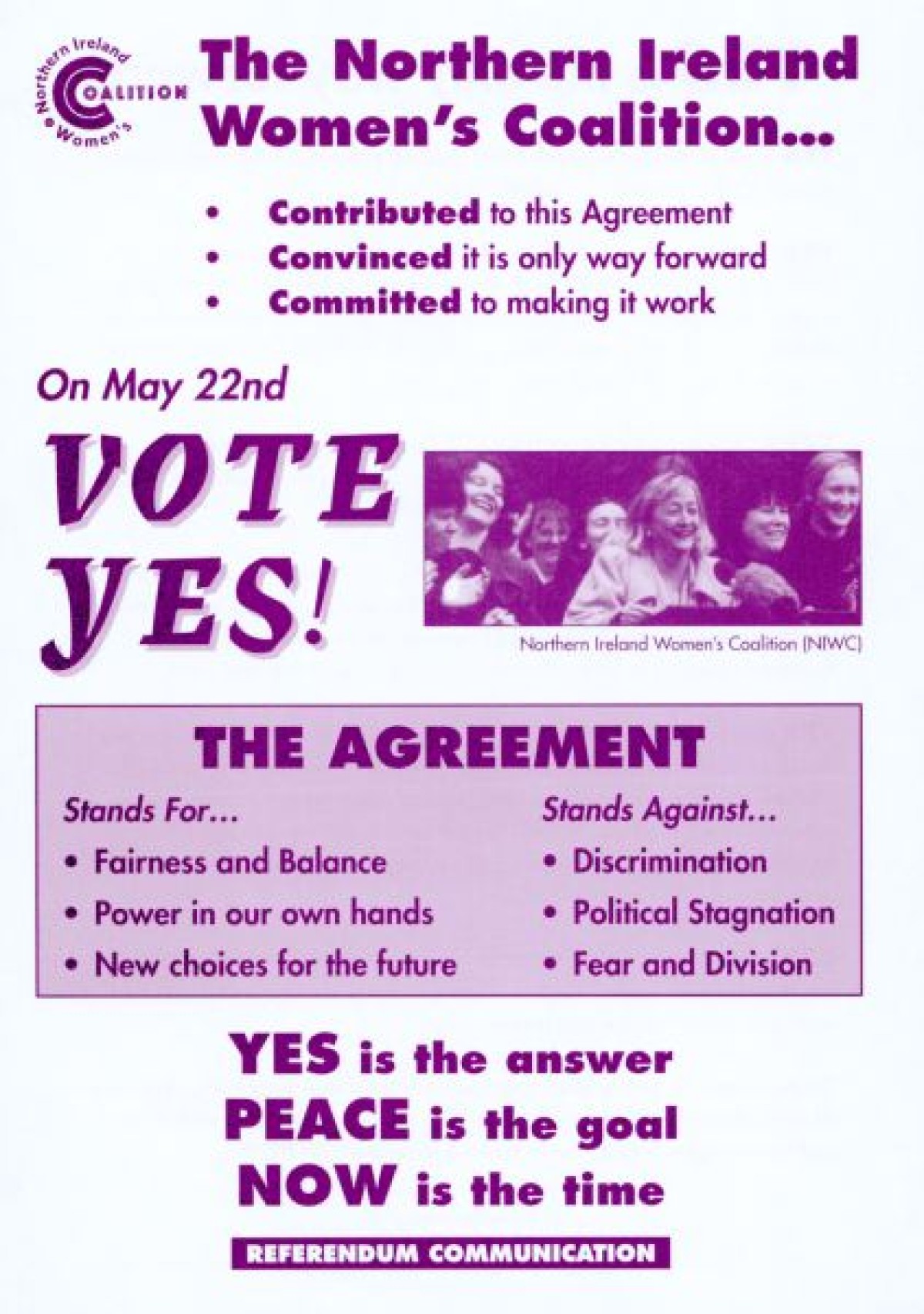 Female Representation, Women's Voice, Politics, Political Parties, Leadership, Election, Voting, Campaign, Party Politics, Women's Groups, Women's Movement, Women, Women's Experiences, Referendum, Good Friday (Belfast) Agreement