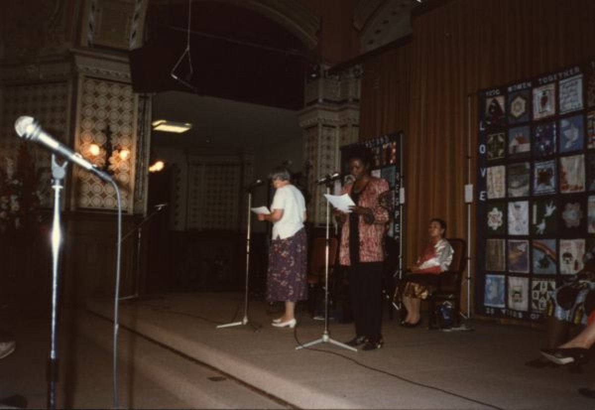 Women Together members. The photographs show a display of quilts from the Northern Ireland Peace Quilt Project, and a workshop around Ireland's past, present and future.