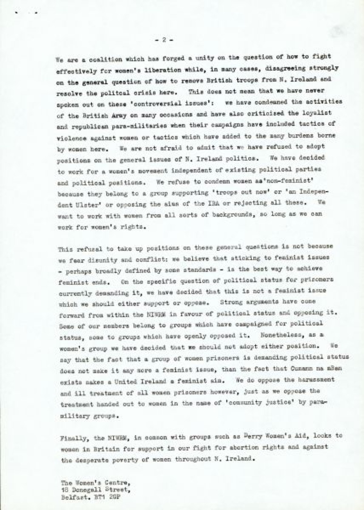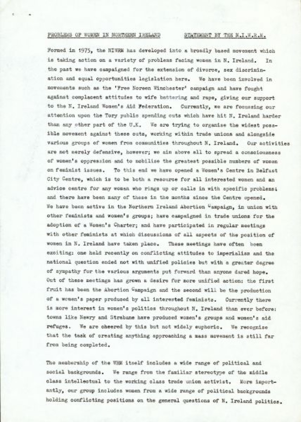 Northern Ireland Political Collection, Northern Ireland Women’s Rights Movement,