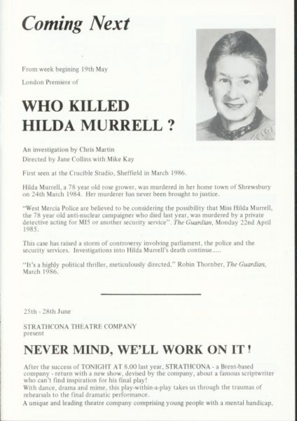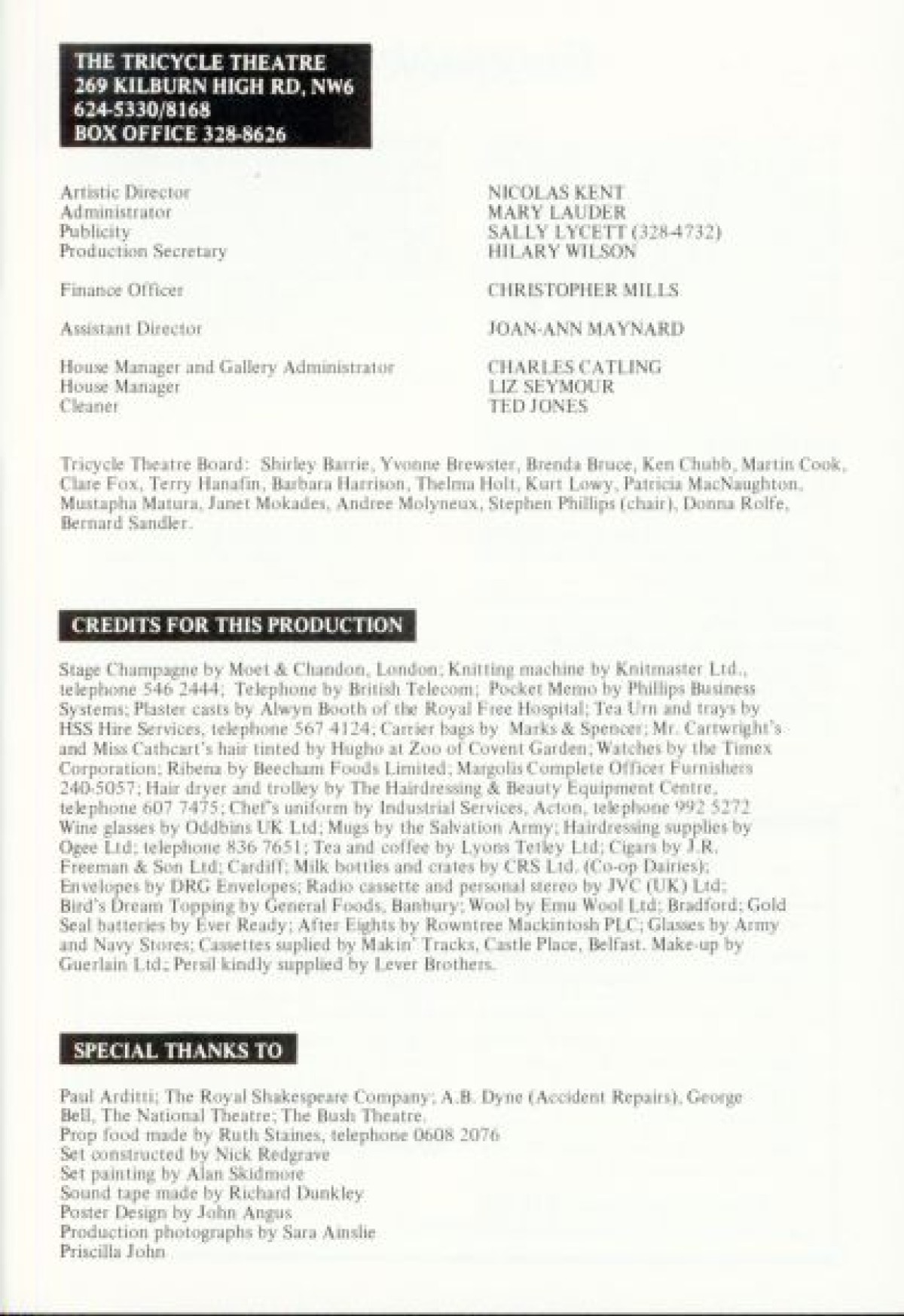 Copyright owner: Paines Plough Tricycle Theatre (now Kiln Theatre)