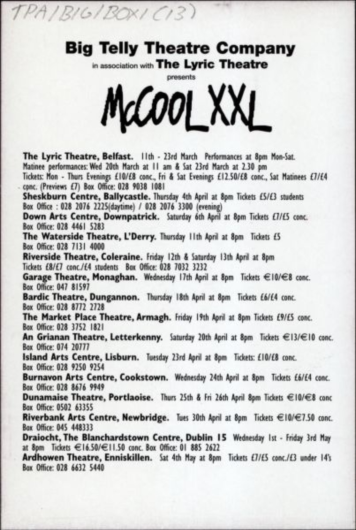 Big Telly Theatre Company's production of "McCool XXL", written by Paul Boyd and directed by Zoe Seaton. The play toured across Ireland and Northern Ireland.