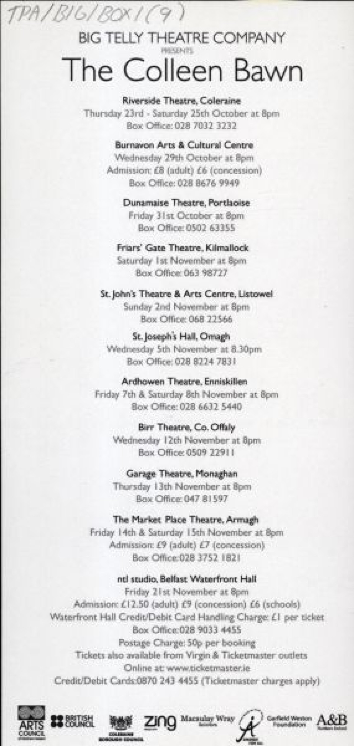 Big Telly's Theatre Company's production of "The Colleen Bawn" by Dion Boucicault and directed by Zoe Seaton. Includes tour dates and venue listings.