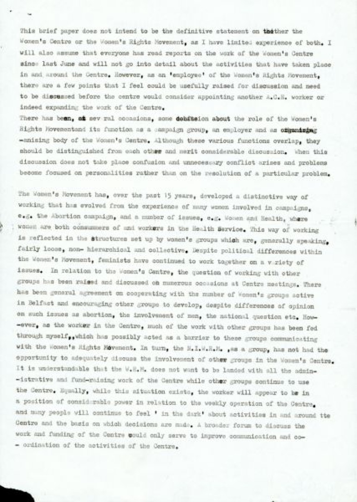 Northern Ireland Women's Rights Movement and its relationship with the Women's Centre, produced by Marie Quiery.