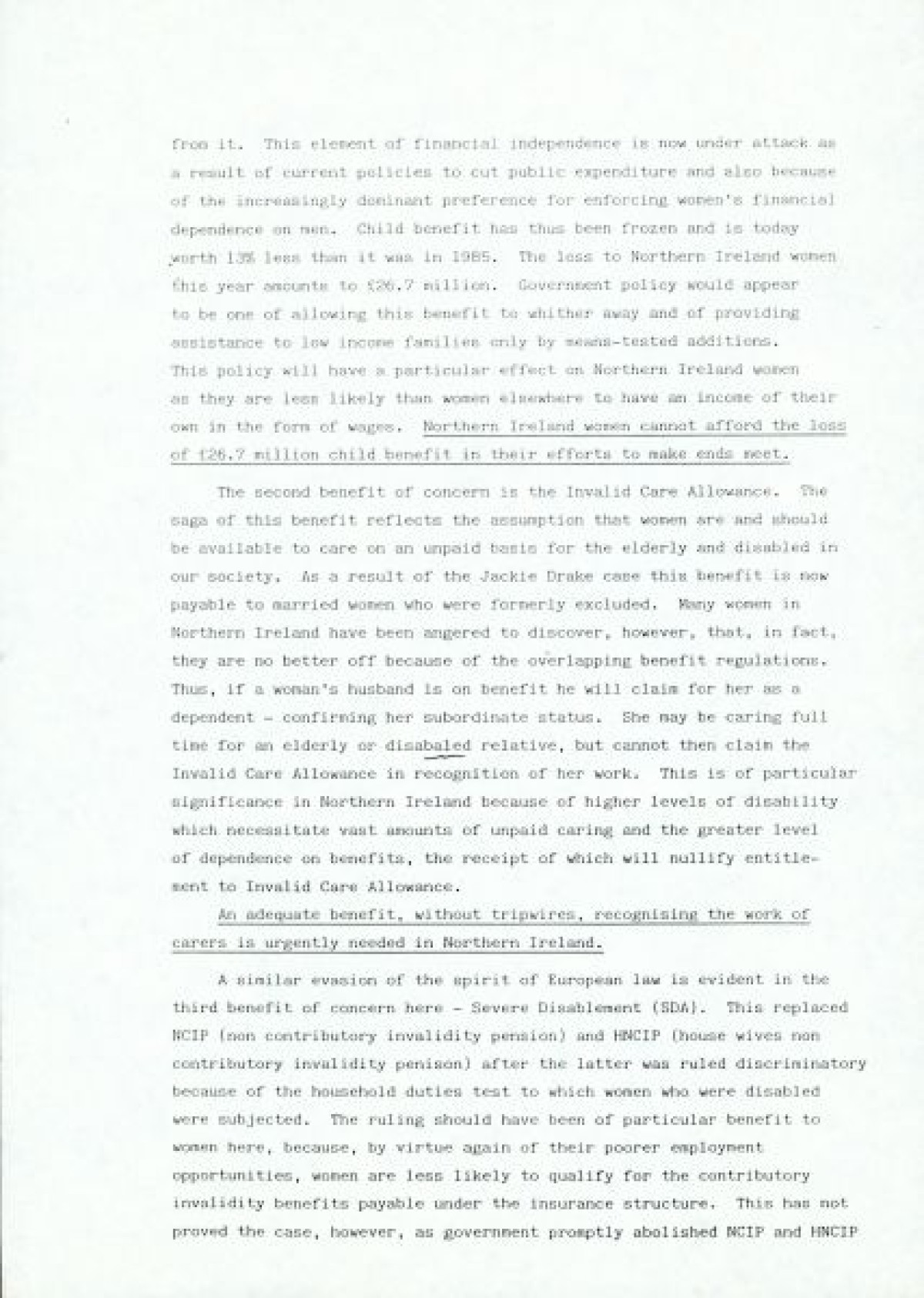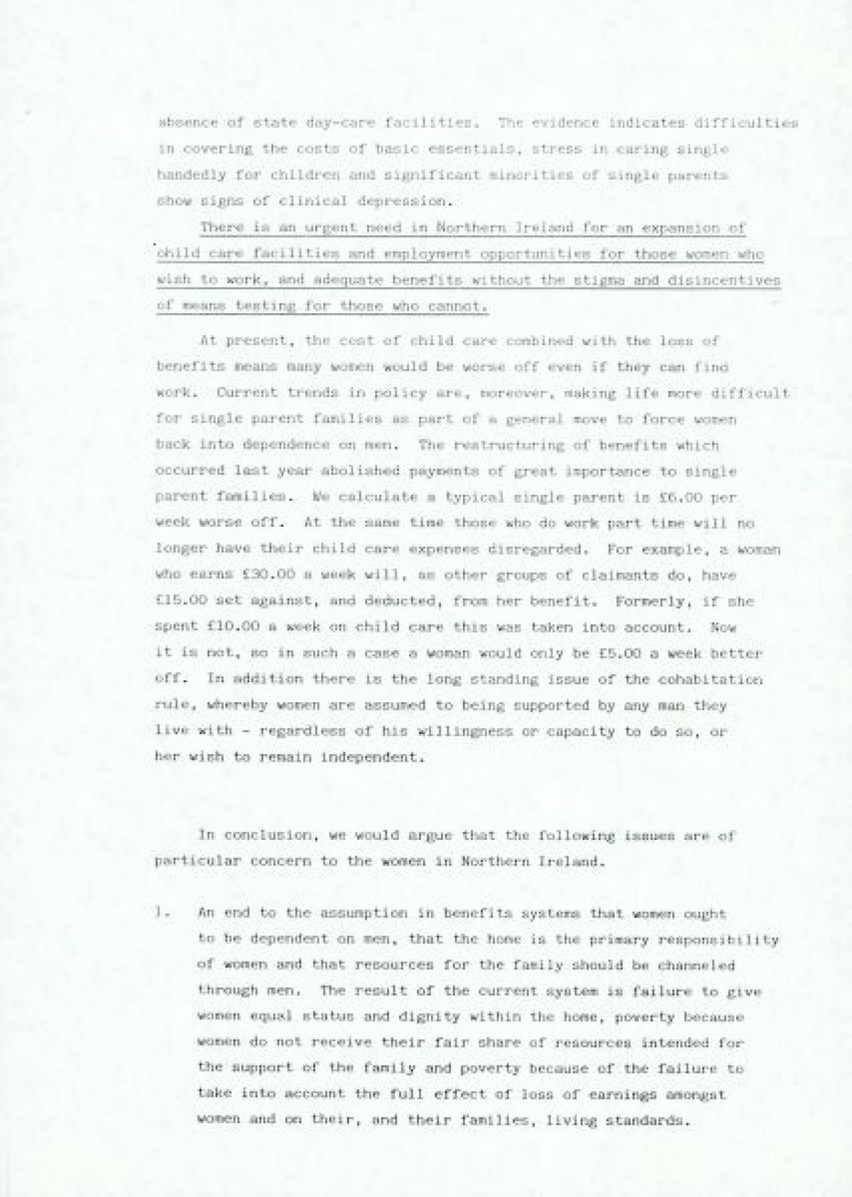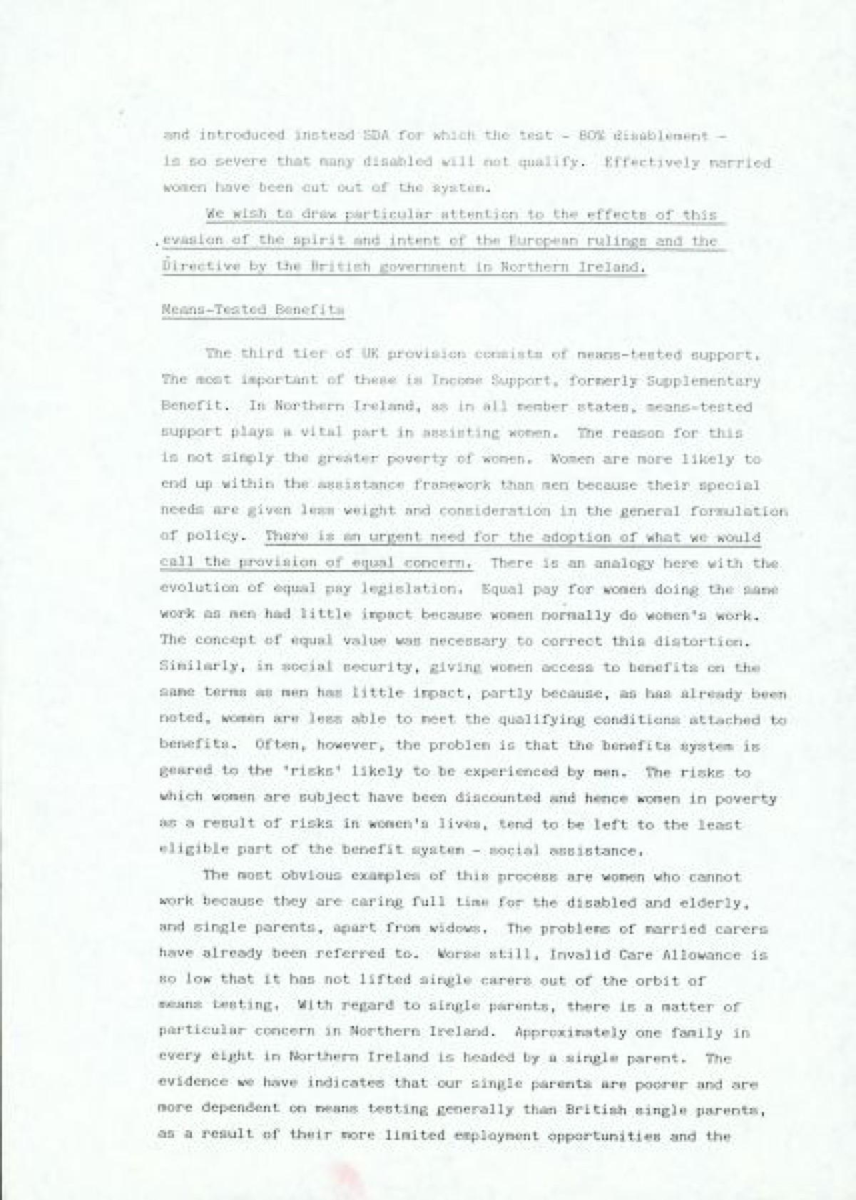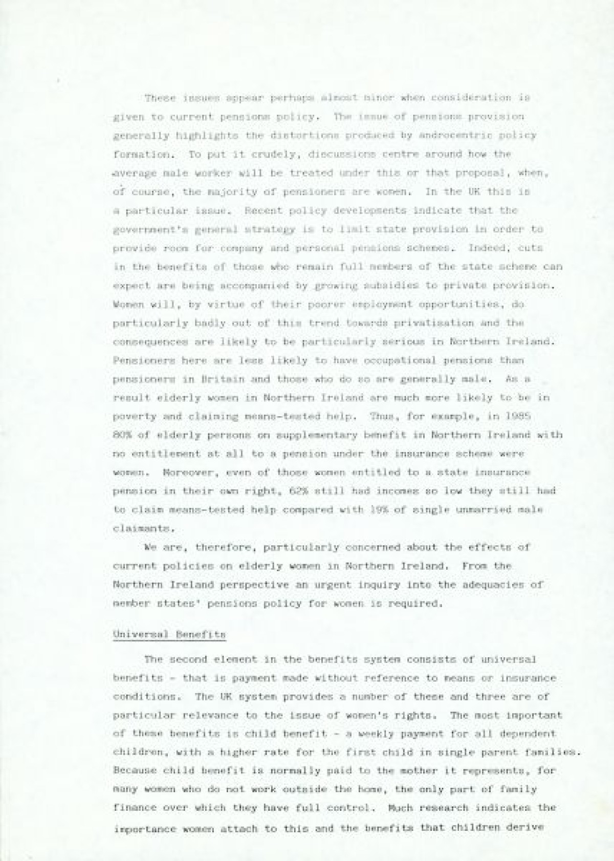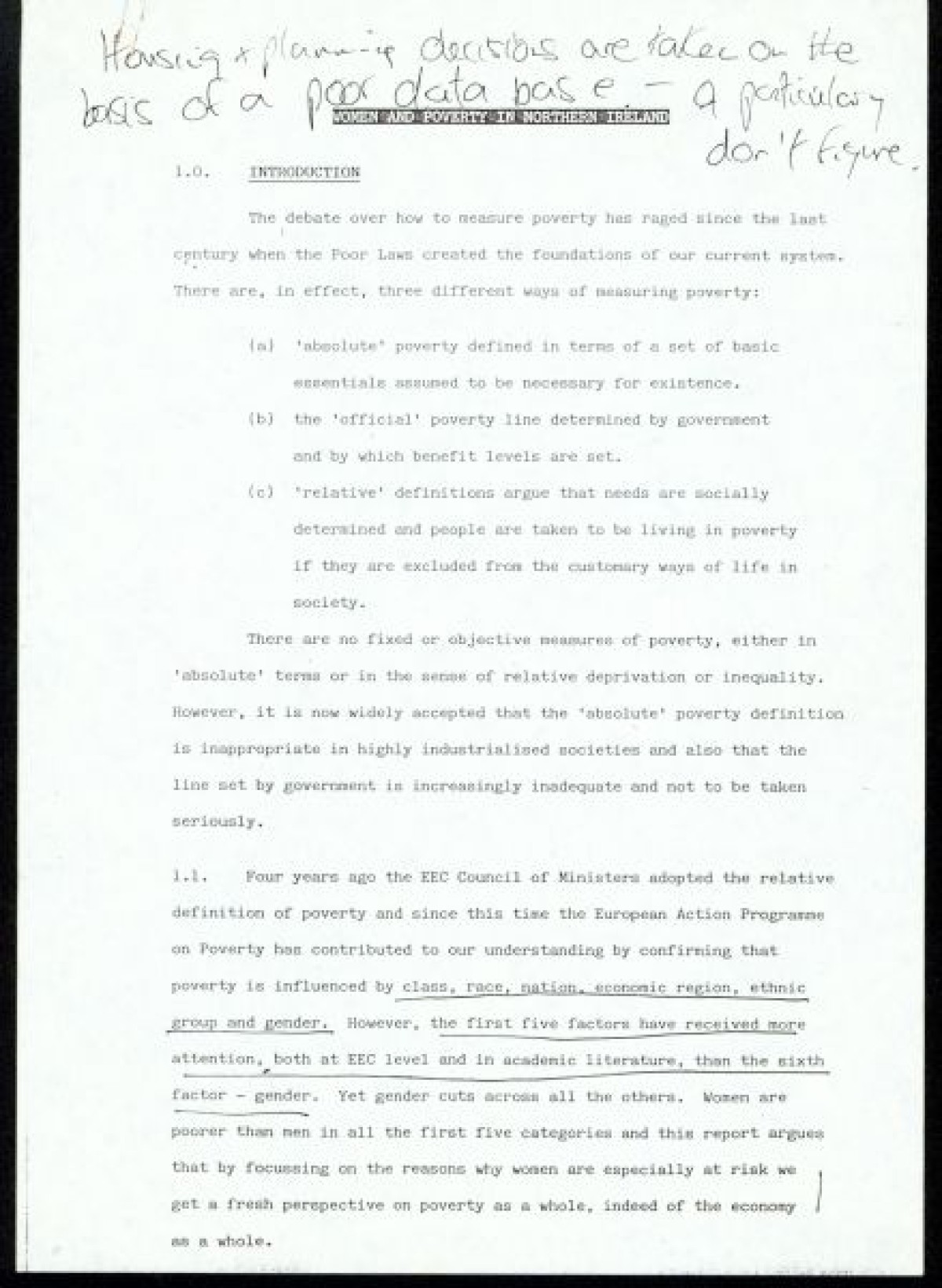 Women and Poverty Group, an organisation founded in 1987/1988 to carry out research on women and poverty in Northern Ireland, and to contribute to policy development in N.I., the UK and Europe in advance of the poverty tribunal in Brussels.