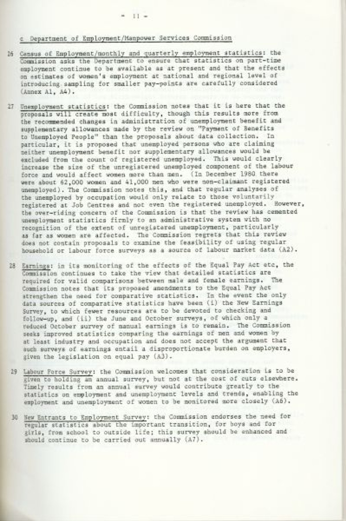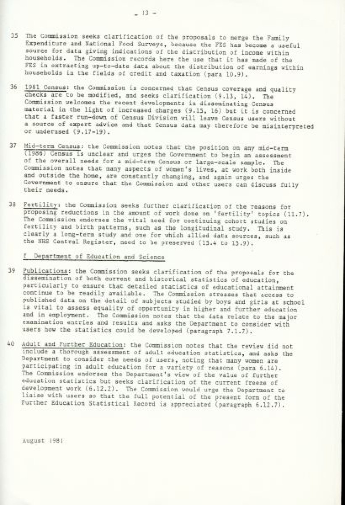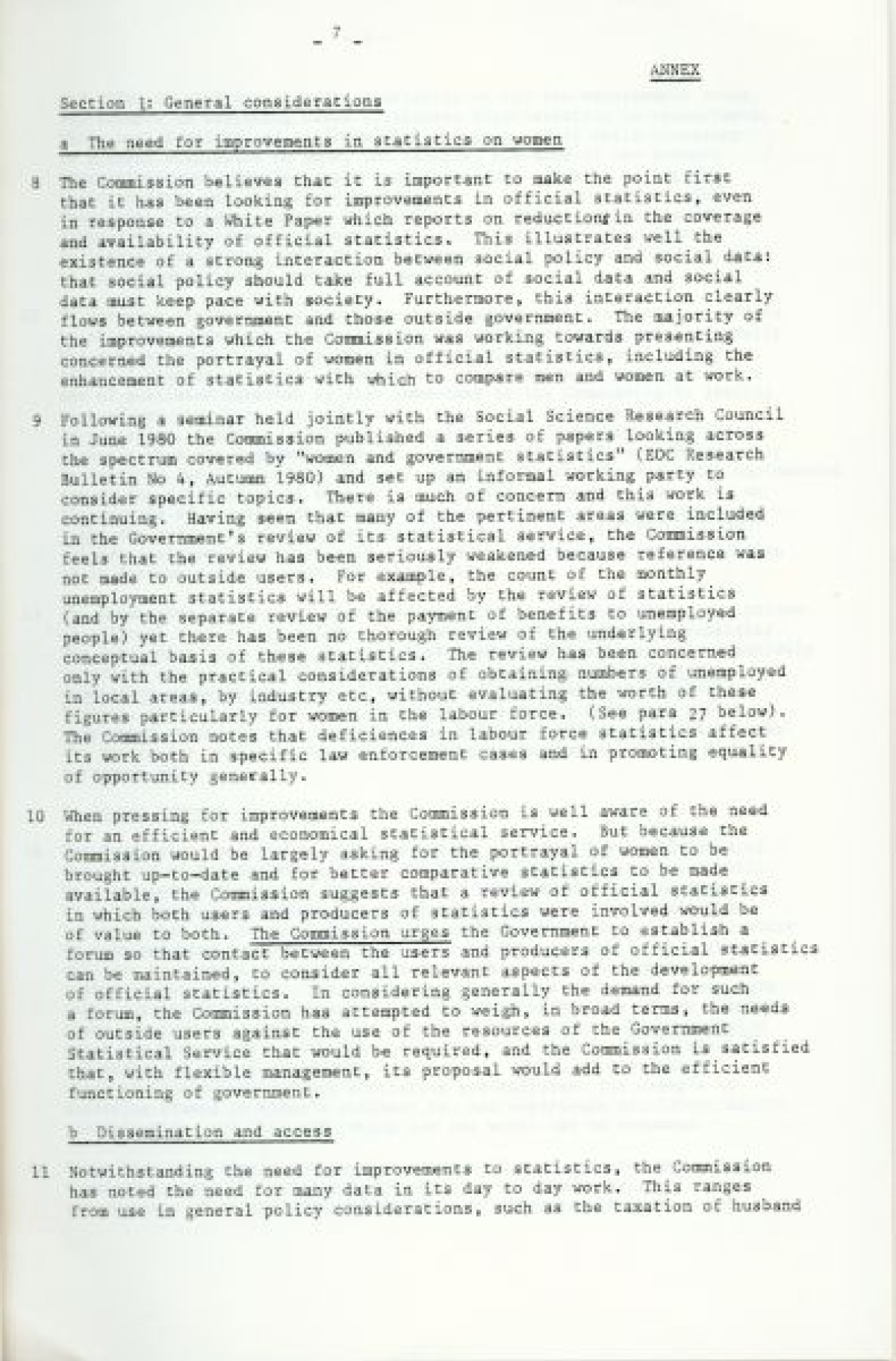 A 1981 report produced by the Equal Opportunities Commission titled 'Government Statistical Services: The response of the Equal Opportunities Commission to White Paper' - with a further report on the general conditions of women and sex discrimination.