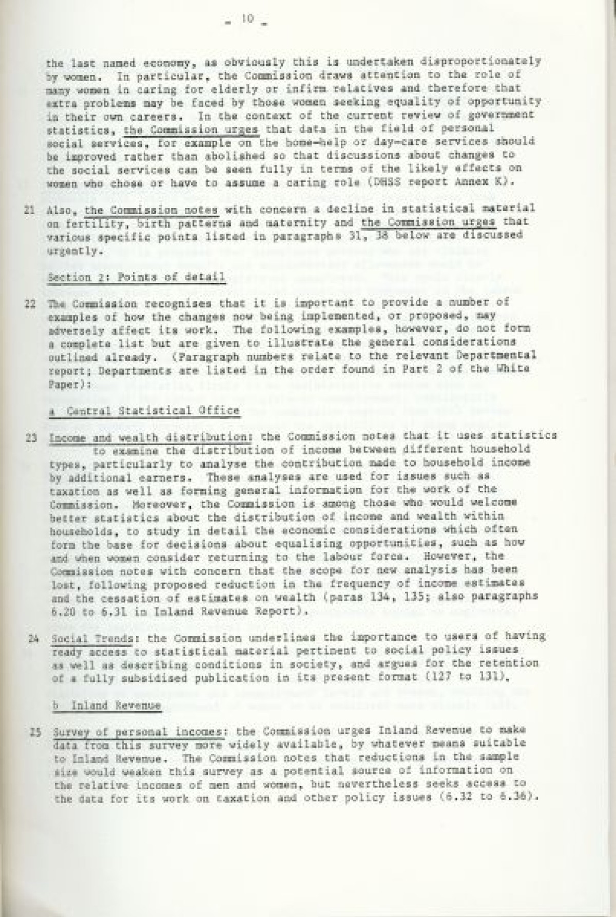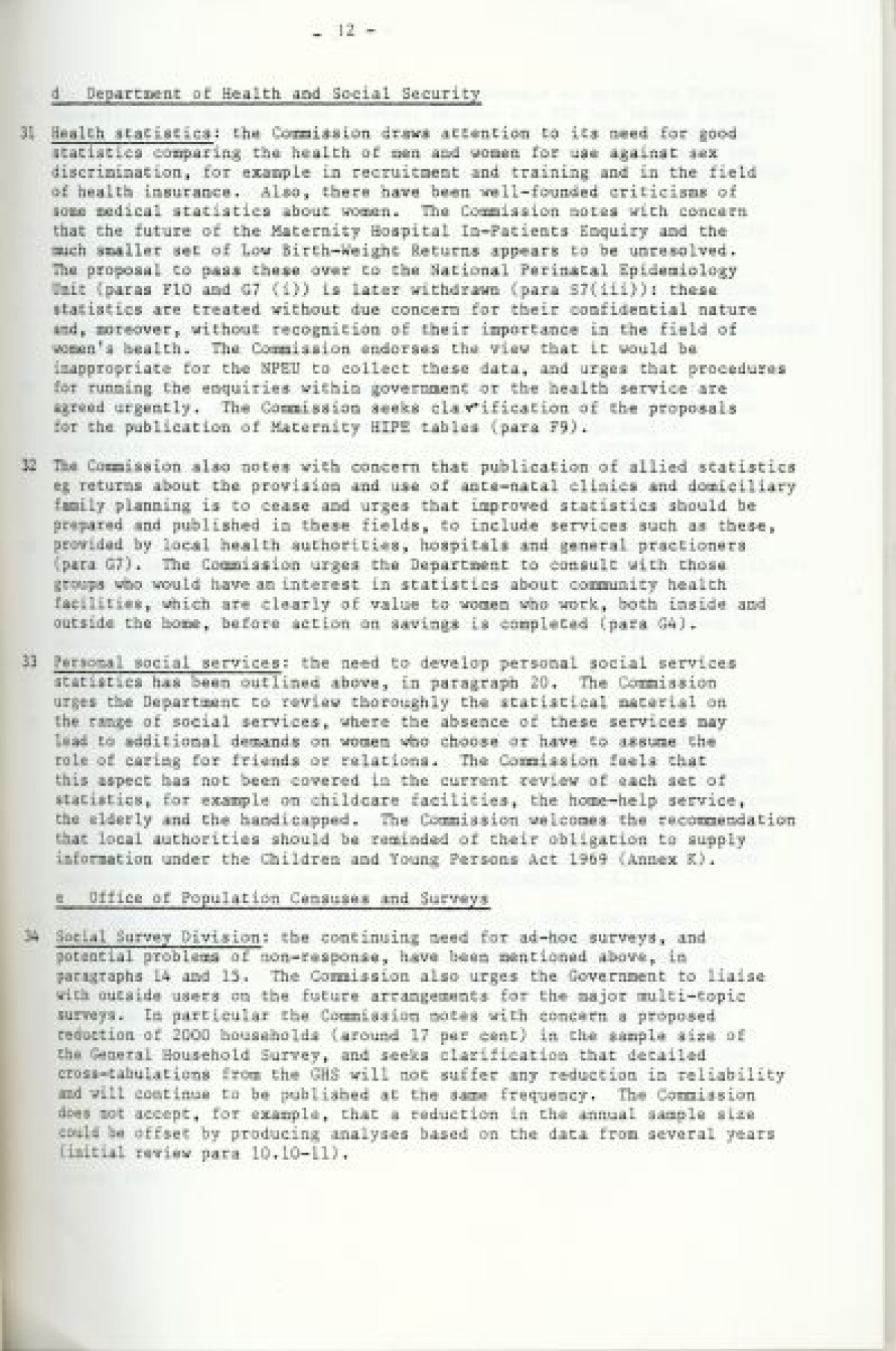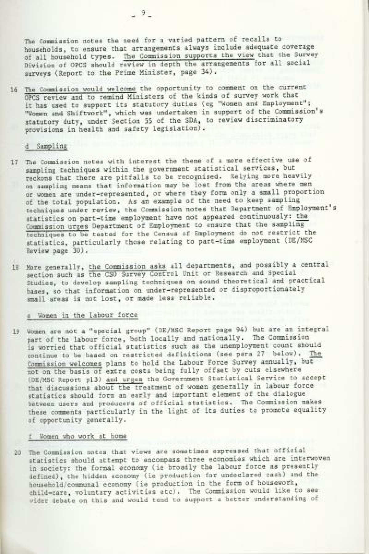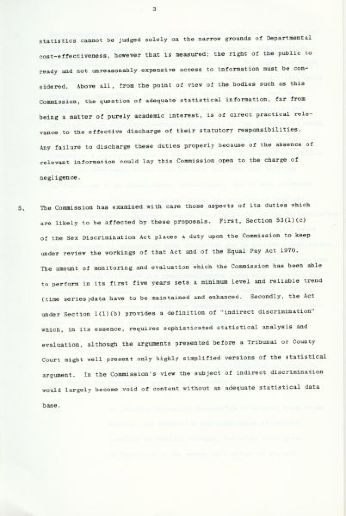 A 1981 report produced by the Equal Opportunities Commission titled 'Government Statistical Services: The response of the Equal Opportunities Commission to White Paper' - with a further report on the general conditions of women and sex discrimination.