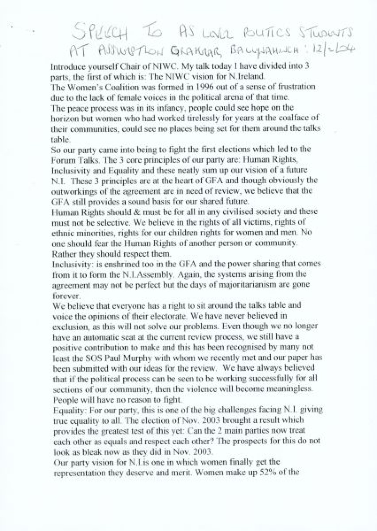 Northern Ireland Political Collection, Northern Ireland Women's Coalition,