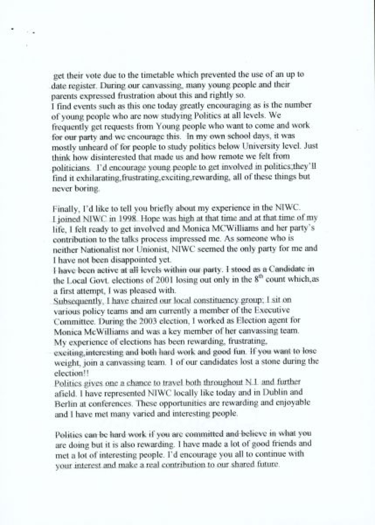Women's Rights, Women's Voice, Women's Experiences, Education, Equality, Youth, Voting, Campaign, Election, Speech, Political Parties, Party Politics, Politics