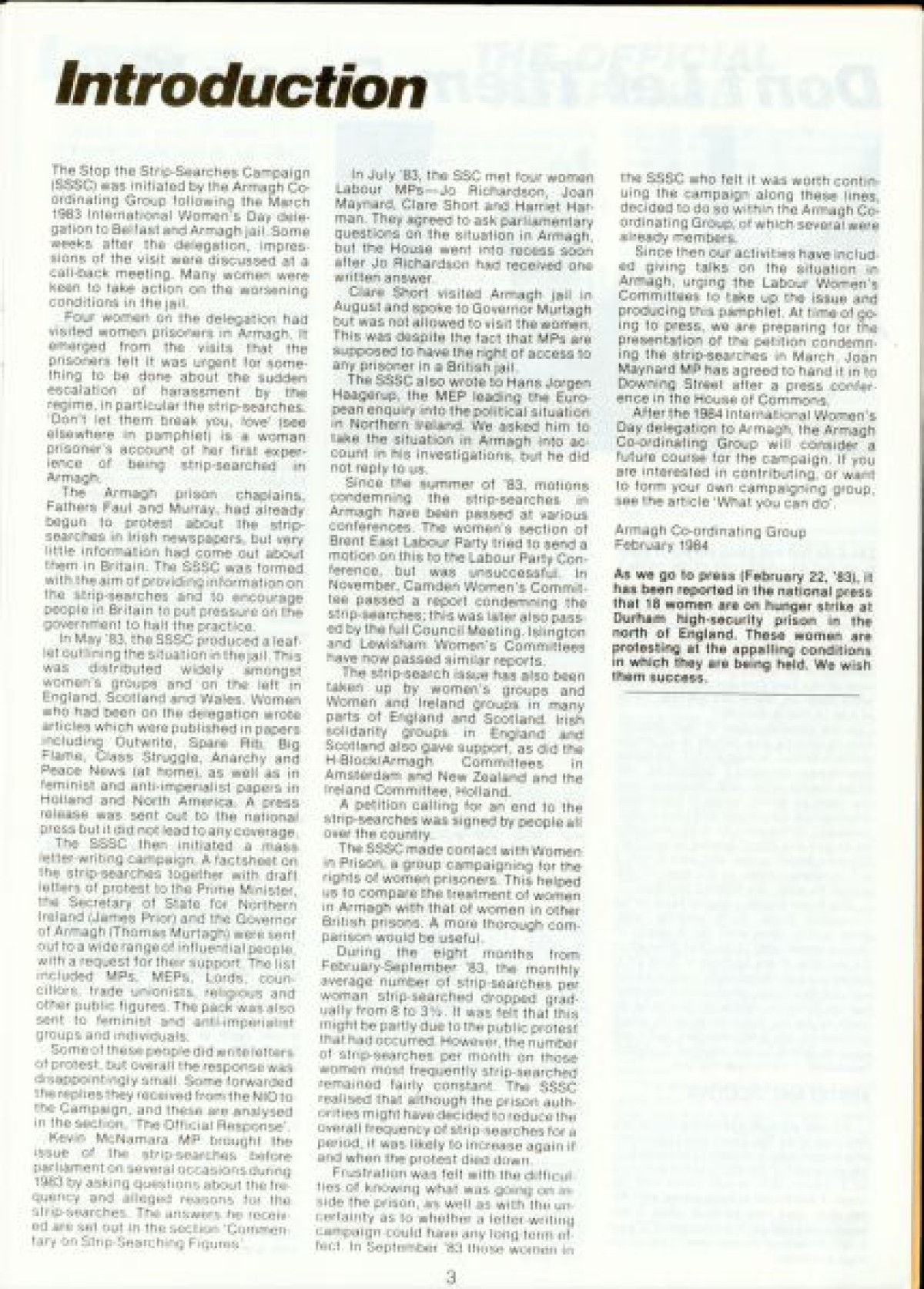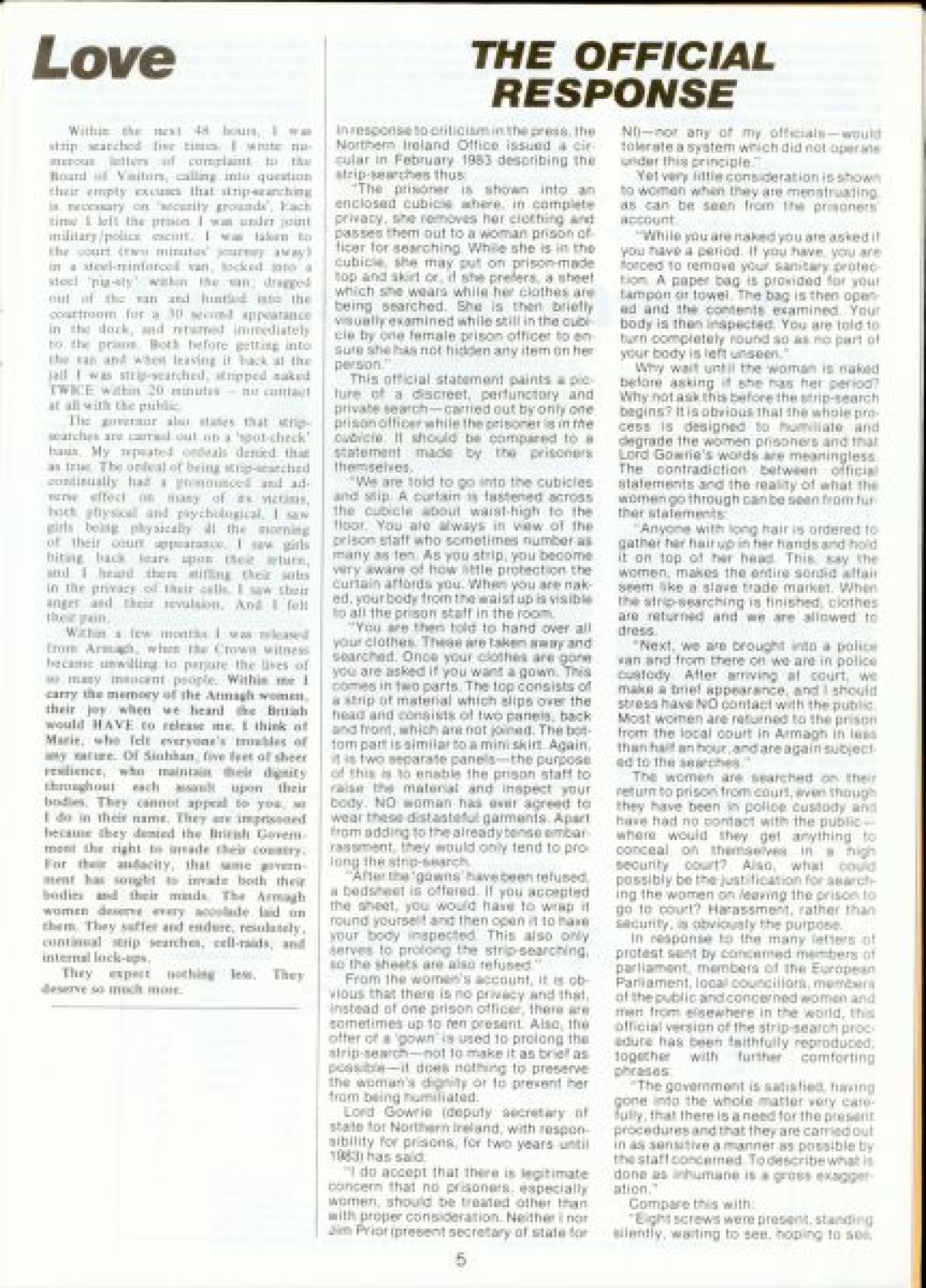 Publications, Strip Searching, Prisoners, Women's Groups, Women's Issues, Women's Liberation, Women's Movement, Women's Rights, Troubles