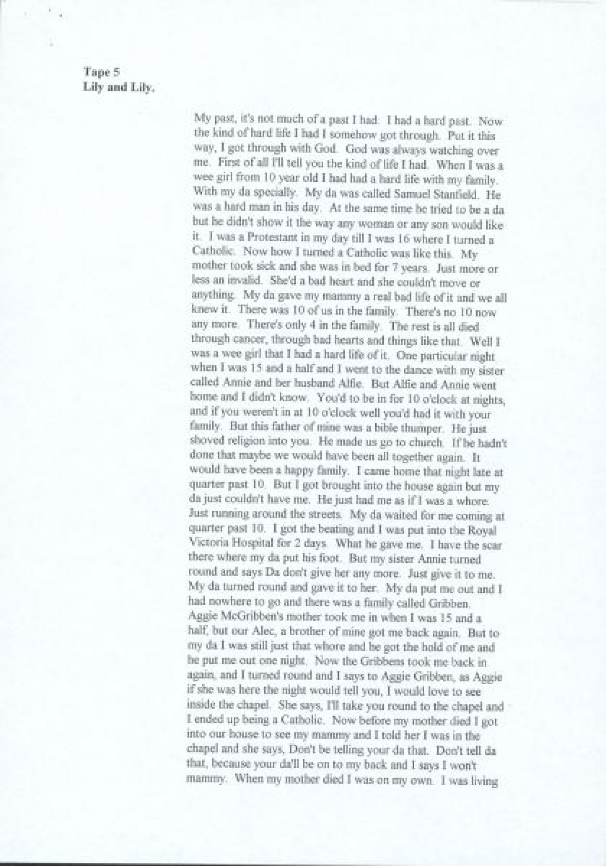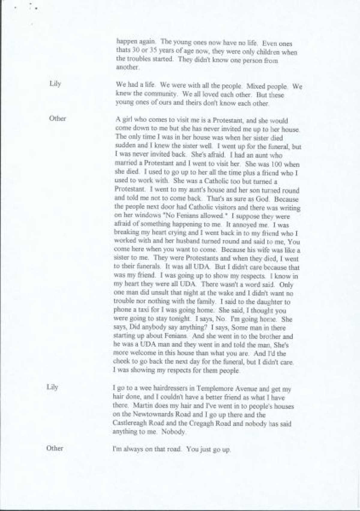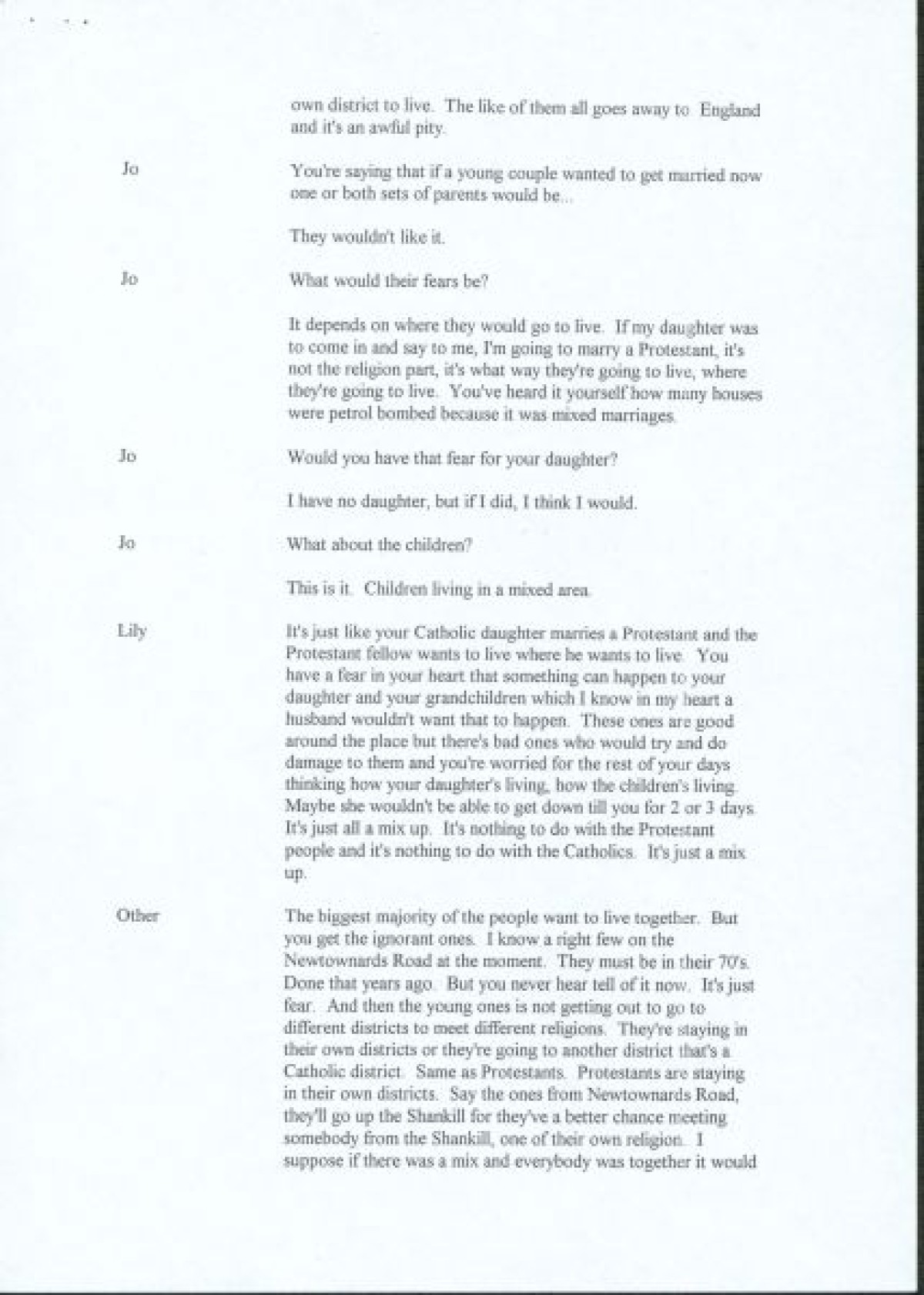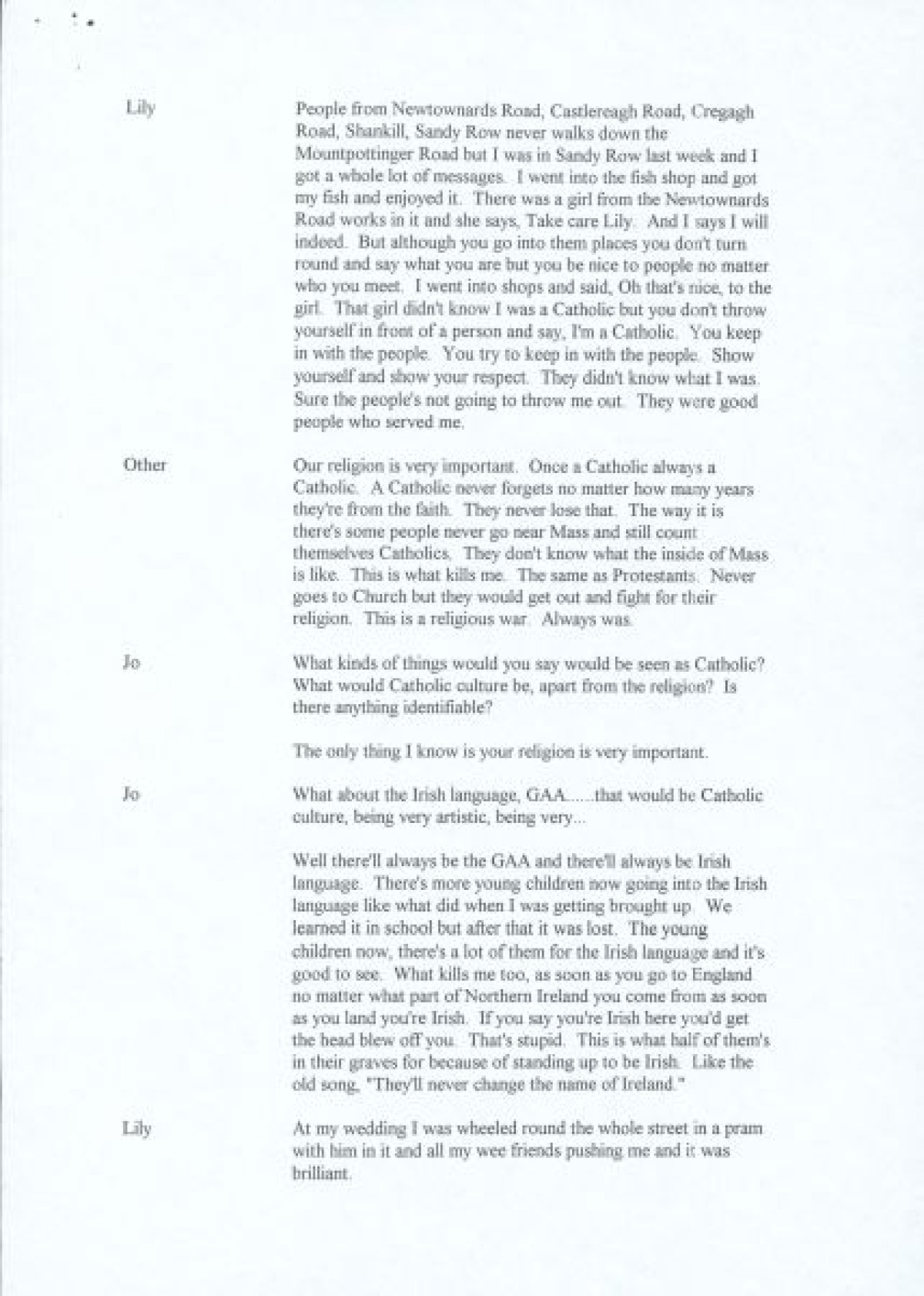 Transcript from interviews conducted by Jo Egan at Sean Martin Youth Club during research for the
