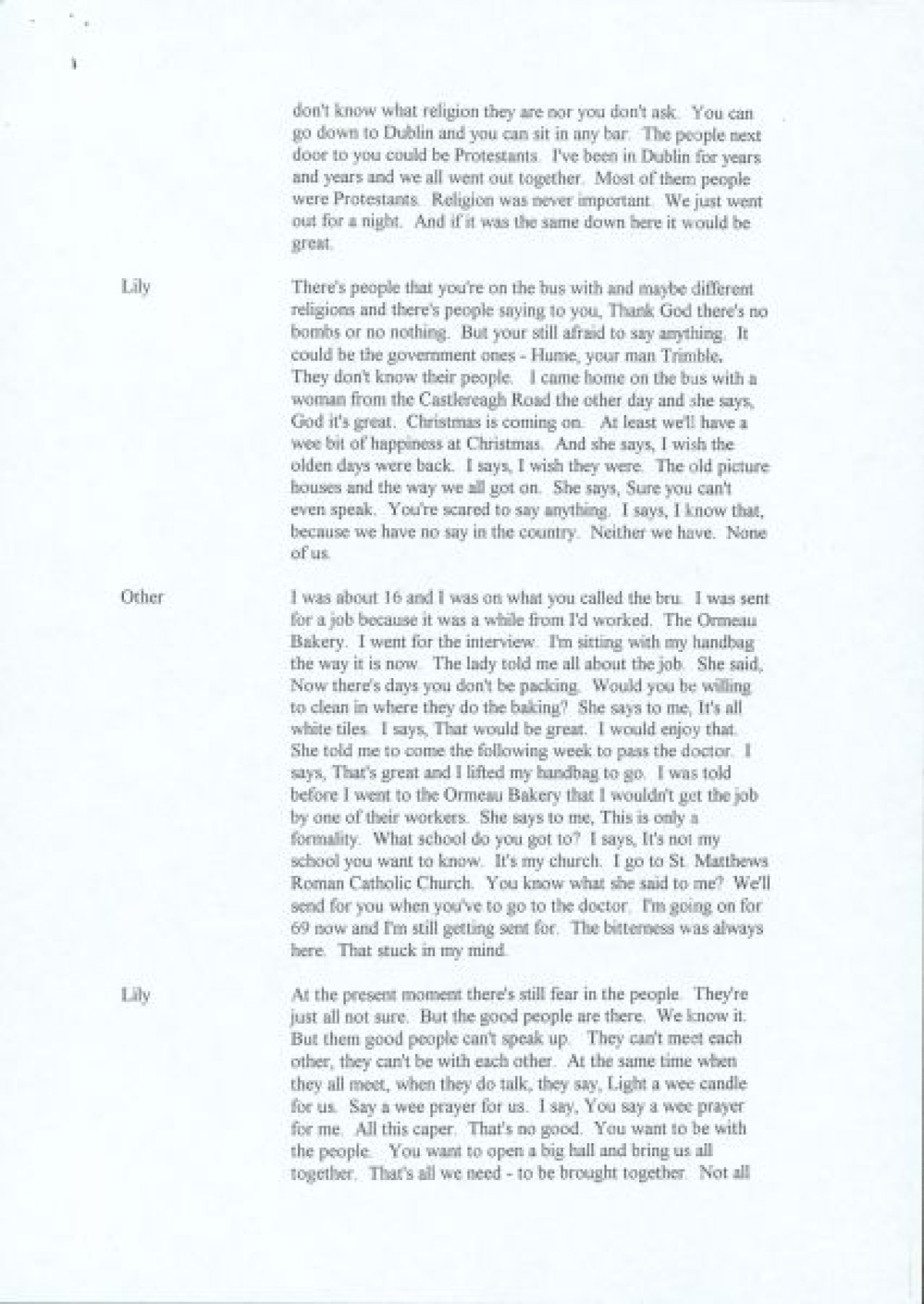 Theatre, Marriage, Troubles, Religion, Youth, Sectarianism, Cross Community