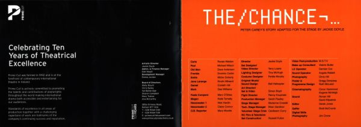 Programme for 'The Chance,' a story by Peter Carey, adapted for stage by Jackie Doyle. Produced by