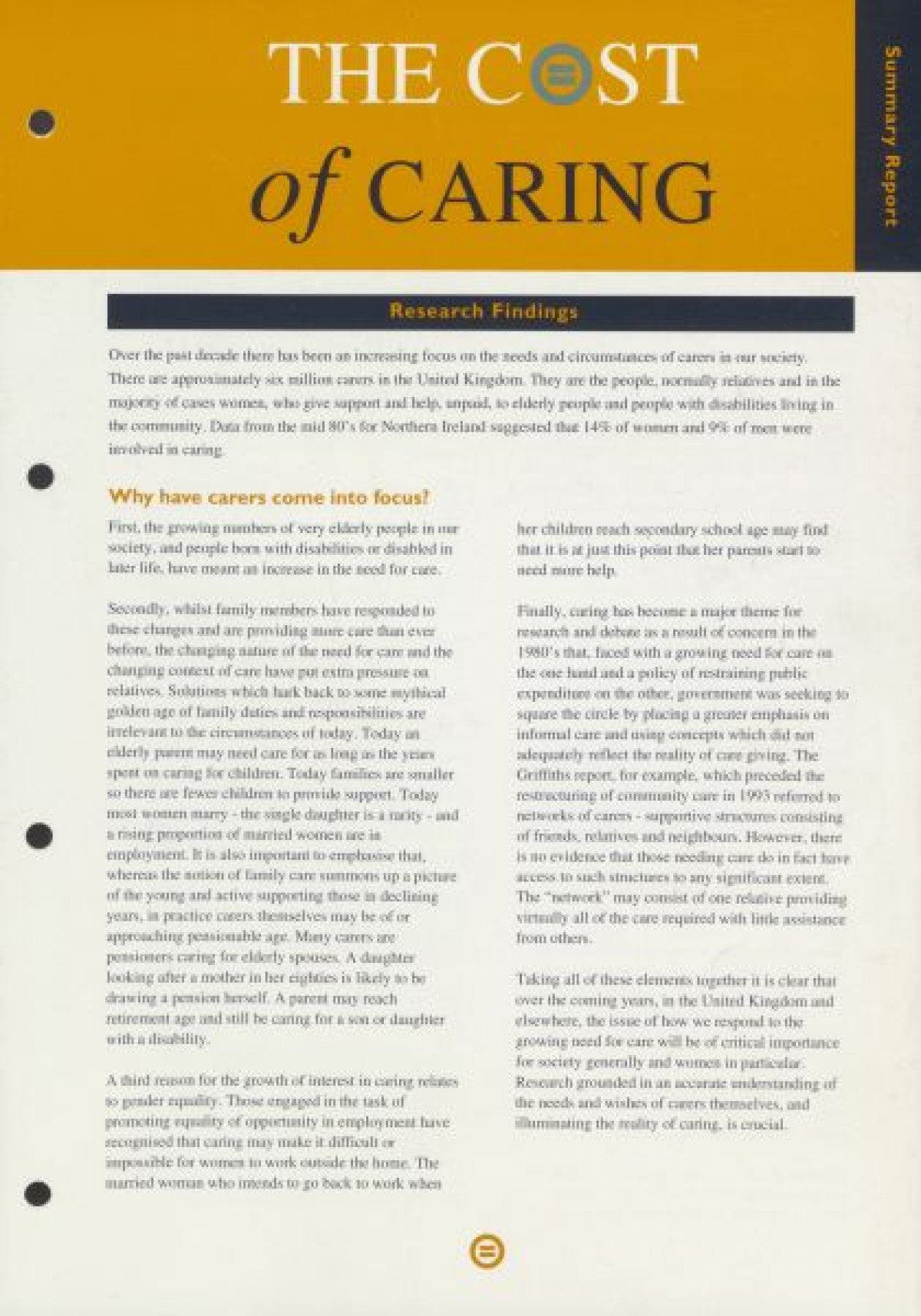 Equality, Law, Gender, Gender Inequality, Gender Issues, Carers, Health Care, Social Care, Community Care, Family, Family Life, Family Roles, Social Issues