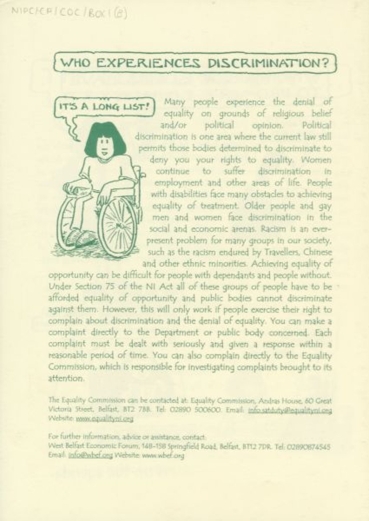 Northern Ireland Political Collection, Ephemera: Equal Opportunities,