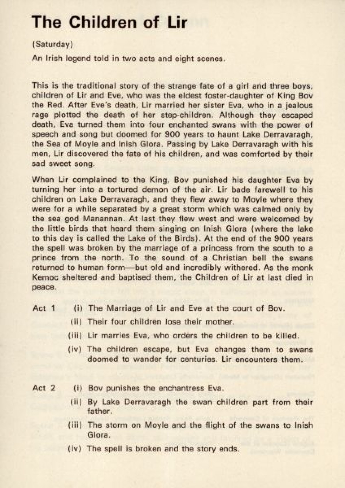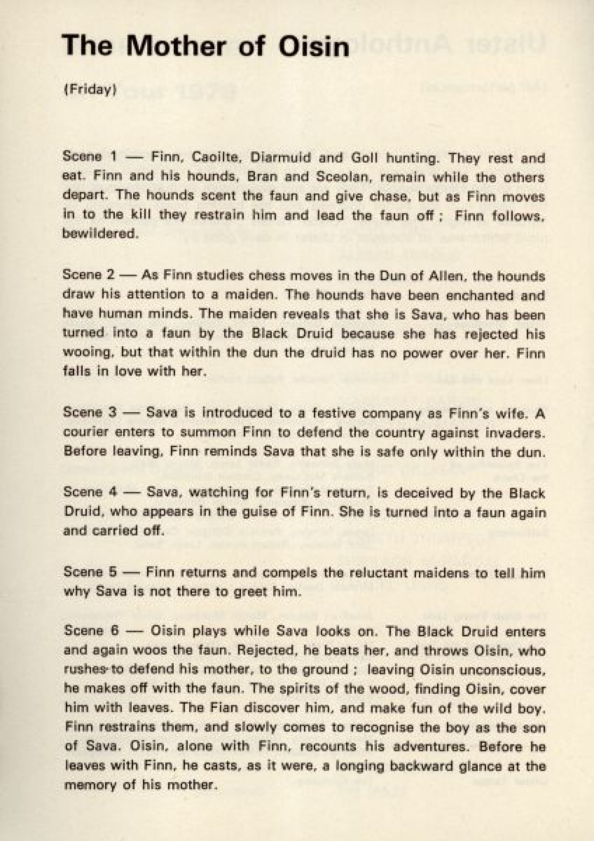 Ulster Anthology, The Mother of Oisin, The Hound of Culann, The Children of Lir, The Variety Market 1960, and