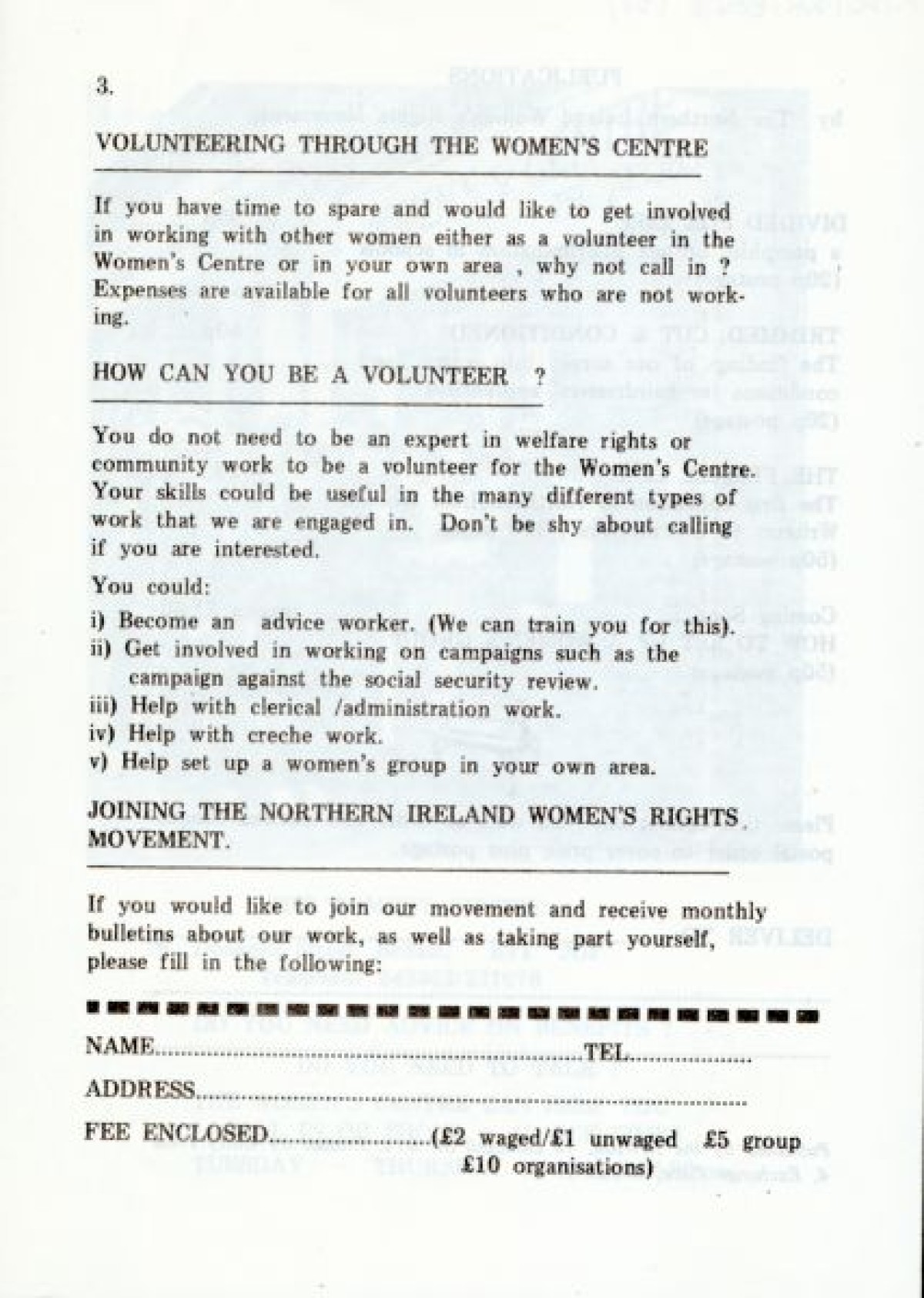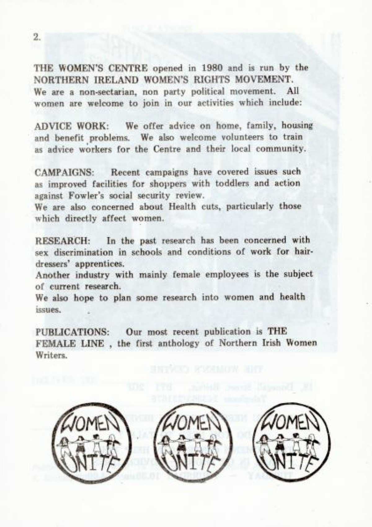 Northern Ireland Women's Rights Movement including 'The Female Line', the first anthology of Northern Irish women writers. The publication also calls on volunteer participation to support the NIWRM.