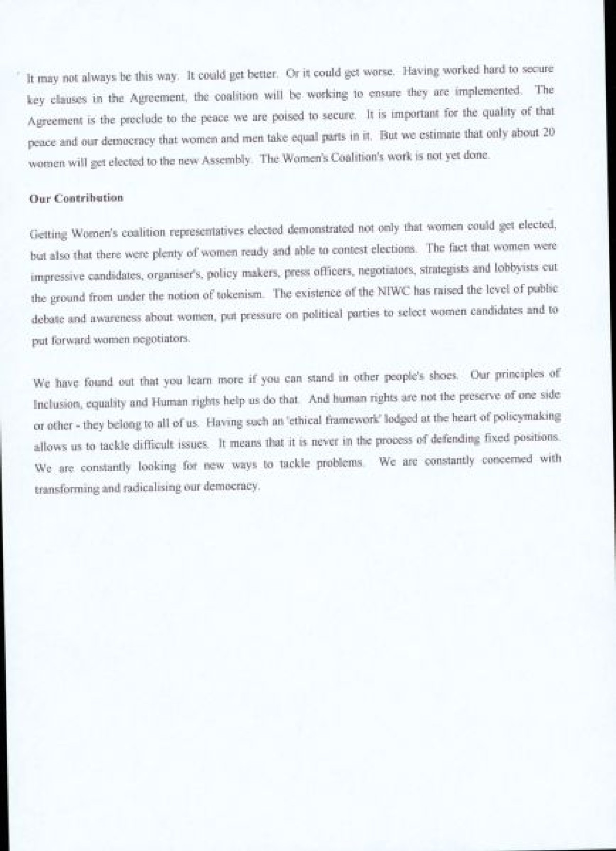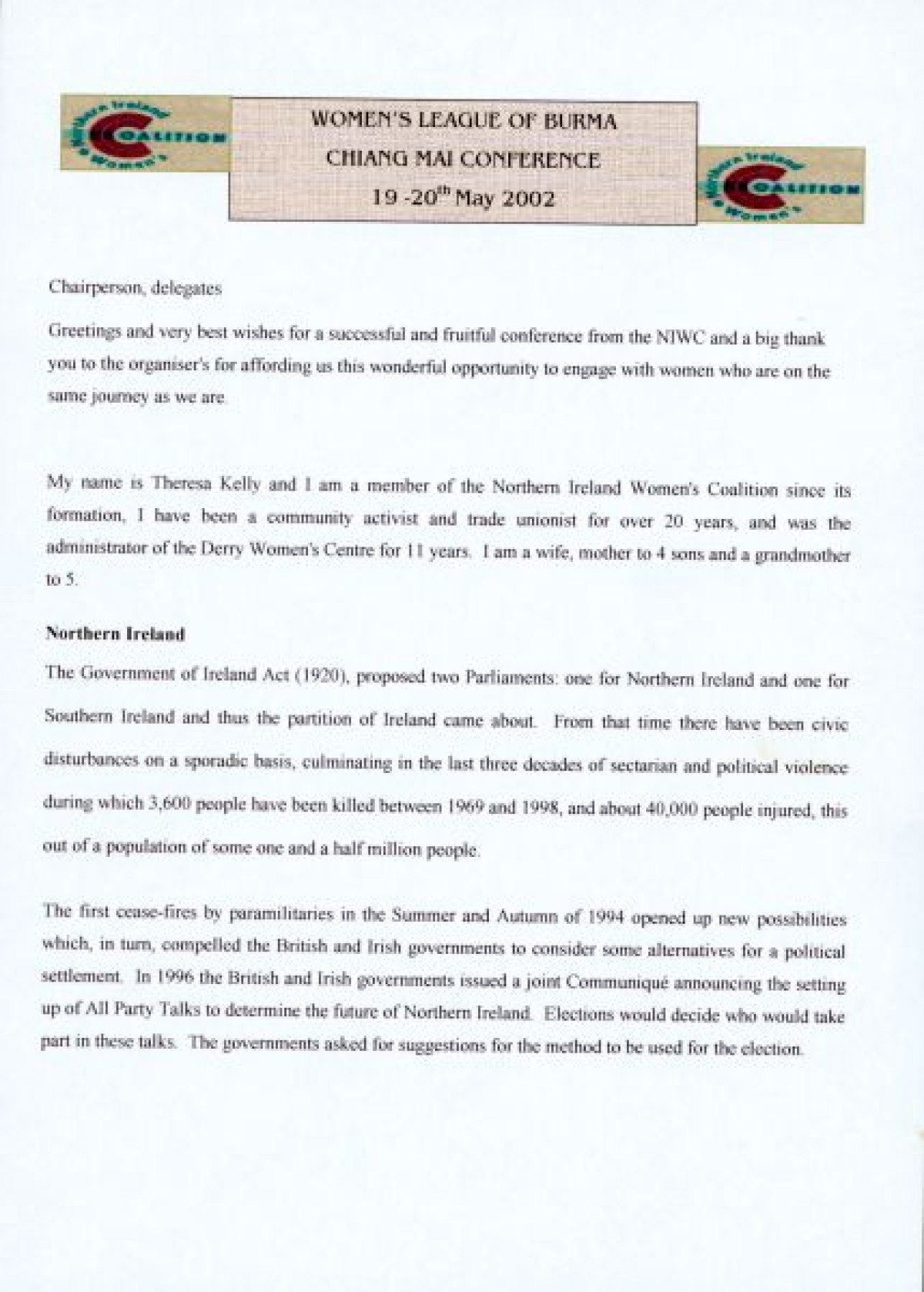 Northern Ireland Women's Coalition as part of the programme for the 'Women's League of Burma Chiang Mai Conference' between 19-20