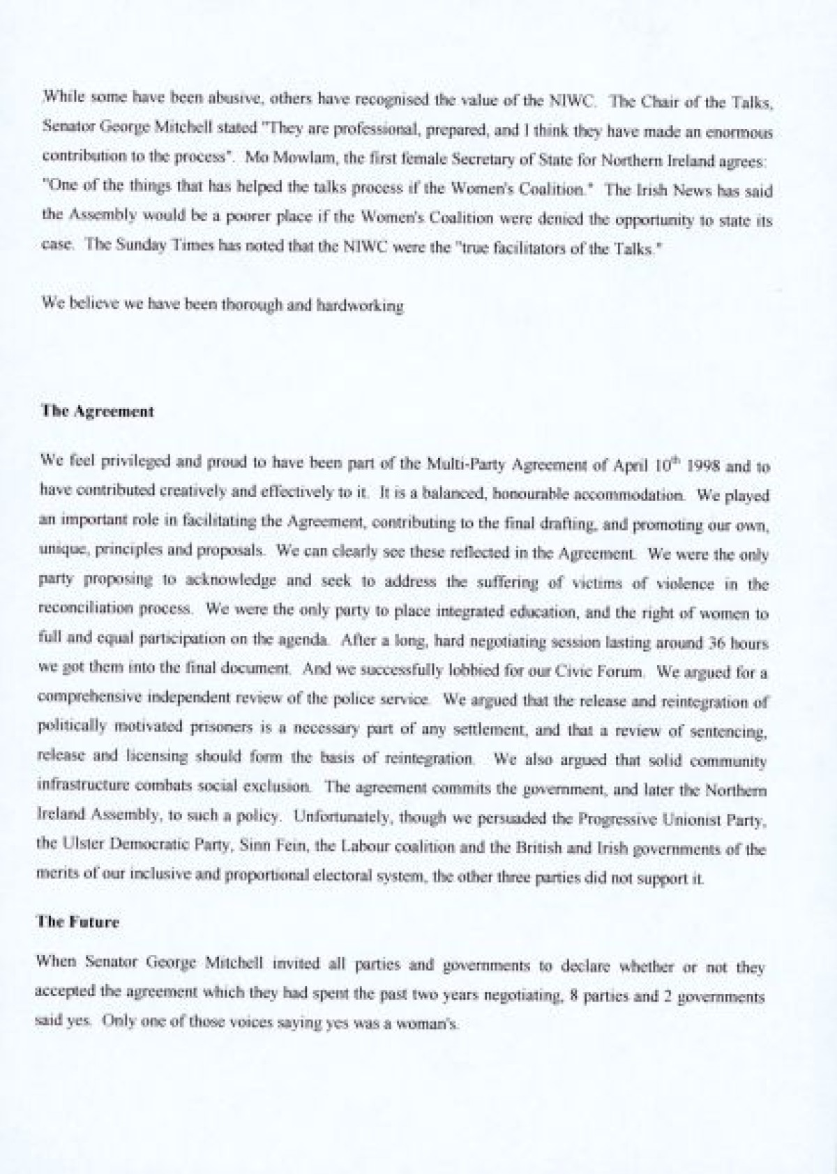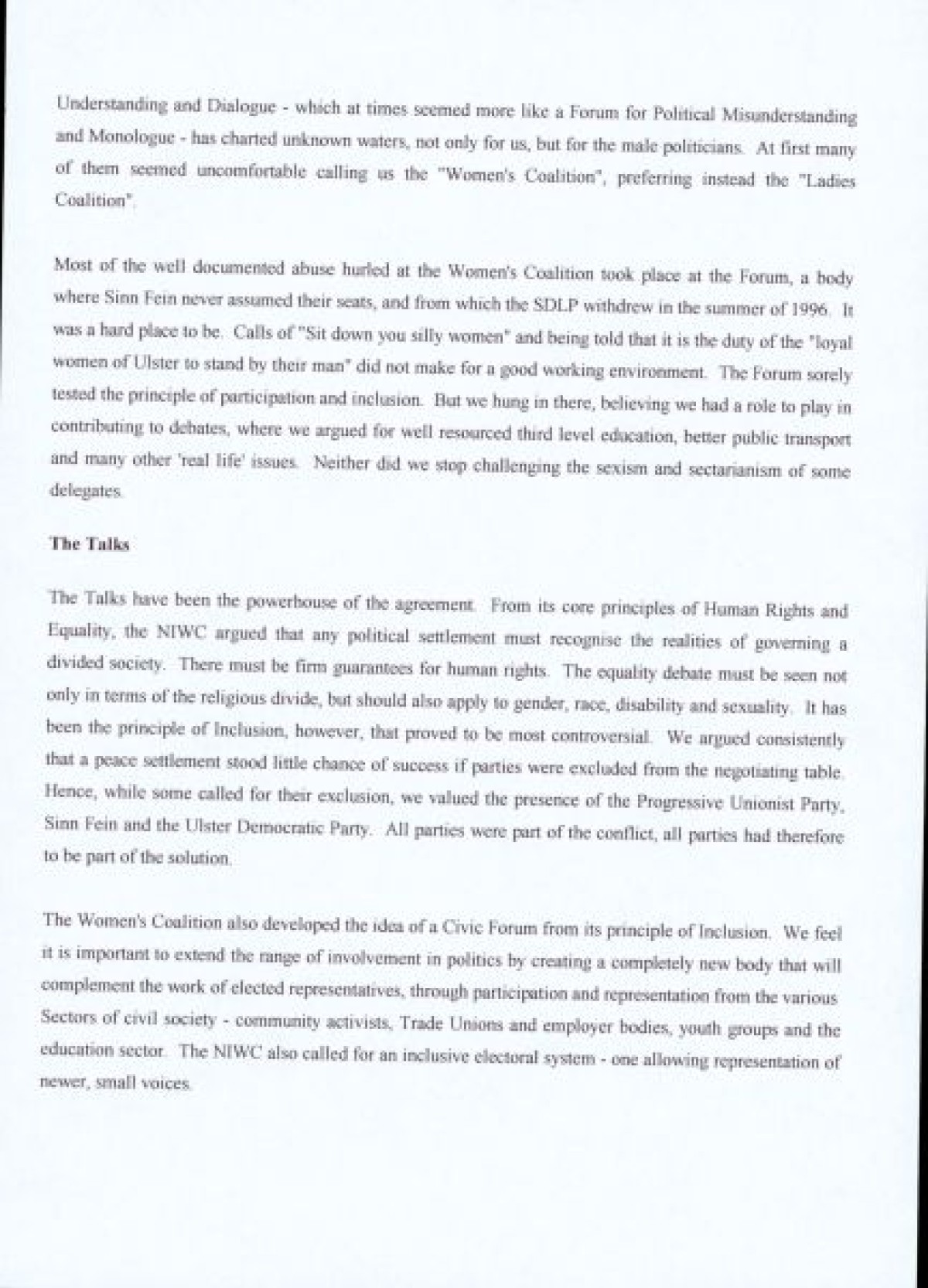 Coalition and the party's role in multi-party talks to achieve the Good Friday/Belfast Agreement in 1998.