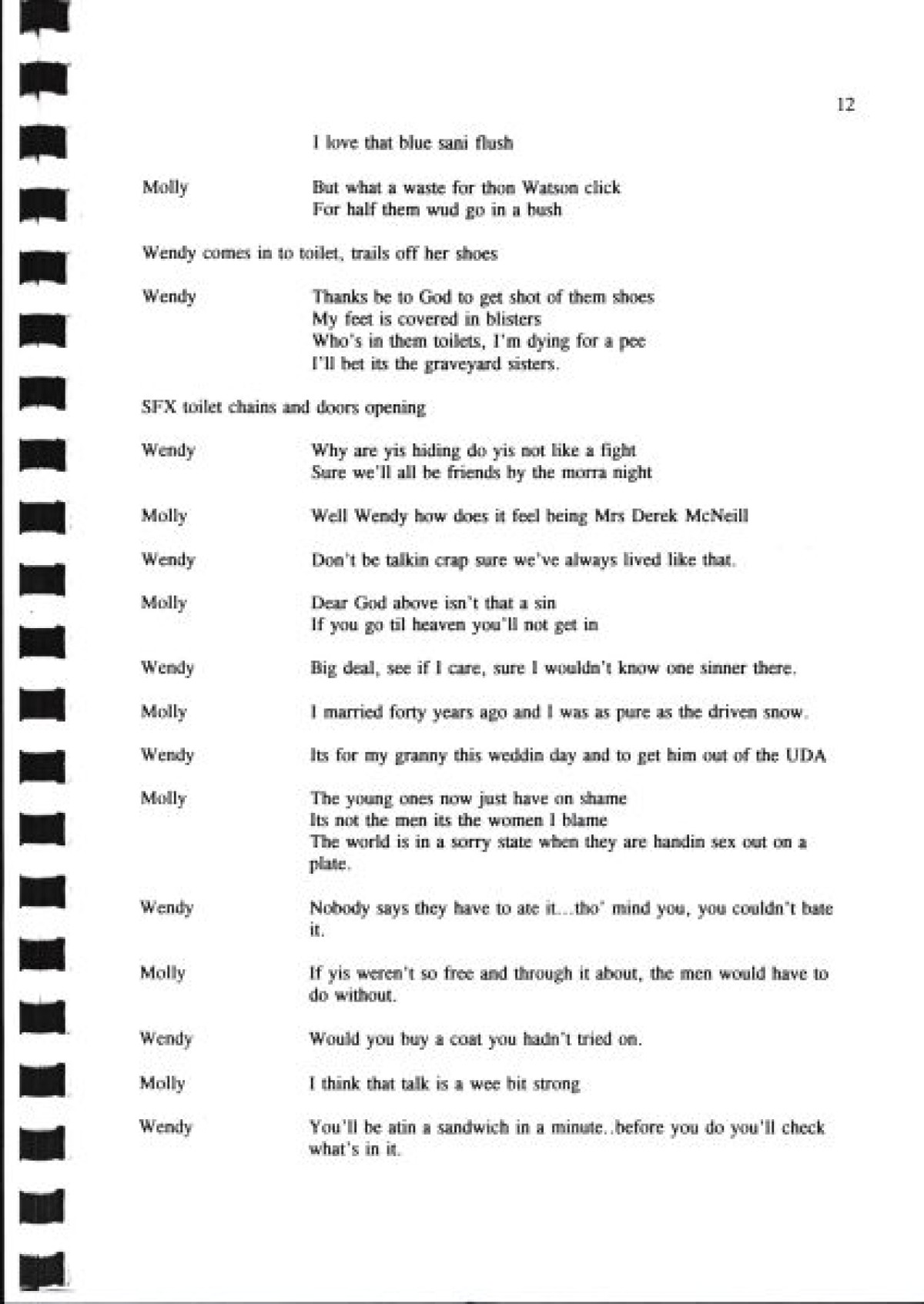 Charabanc Theatre Company. Full script available at the Linen Hall Library.