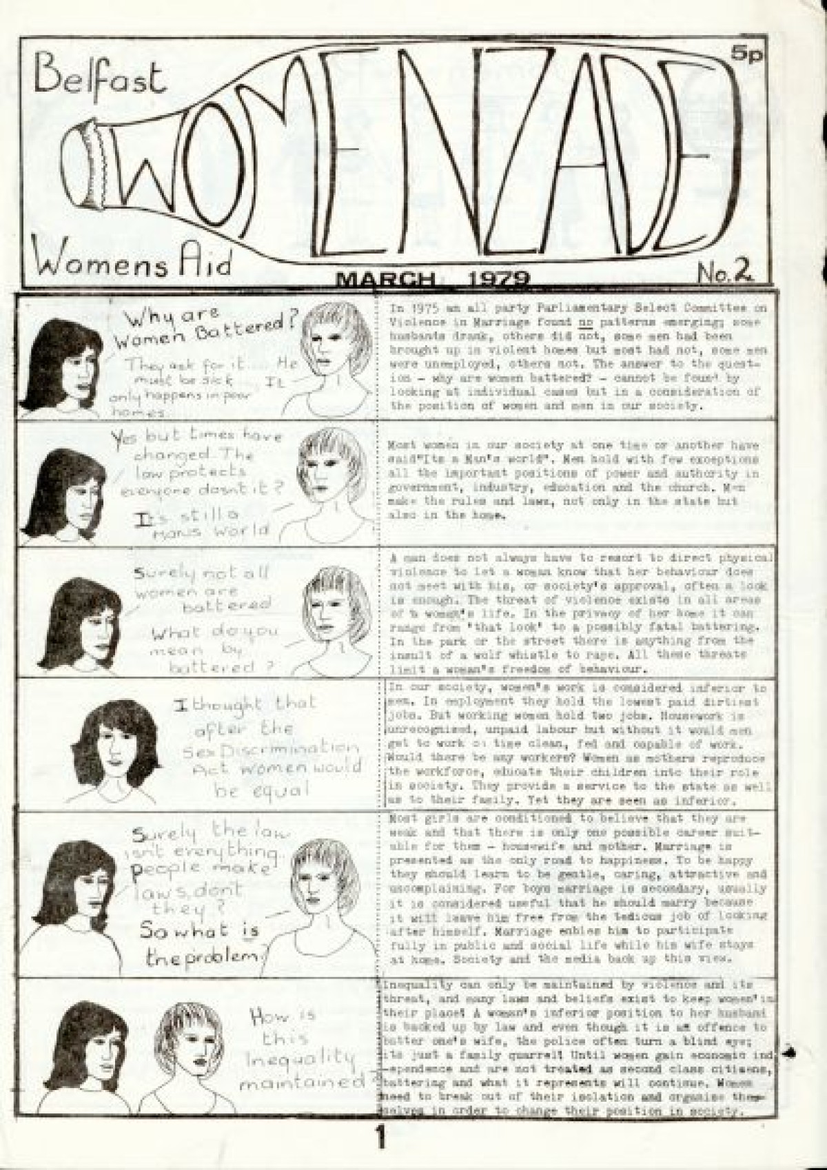 Typewritten zine produced by Belfast Women's Aid, titled