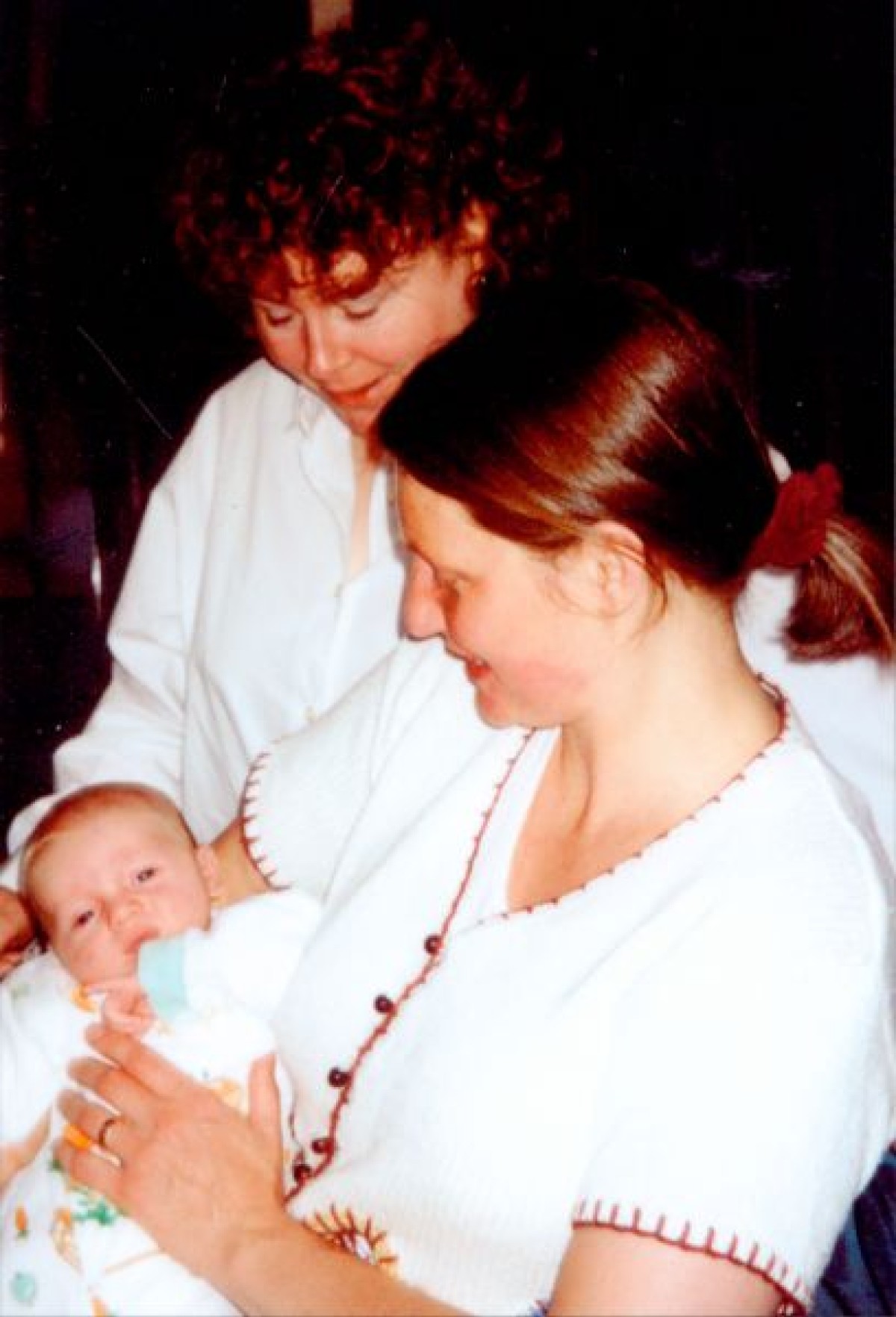 Four photographs in colour and black and white, depicting Word of Mouth Poetry Collective members Elaine Gaston with her son, Ann Zell and Pia Gore.