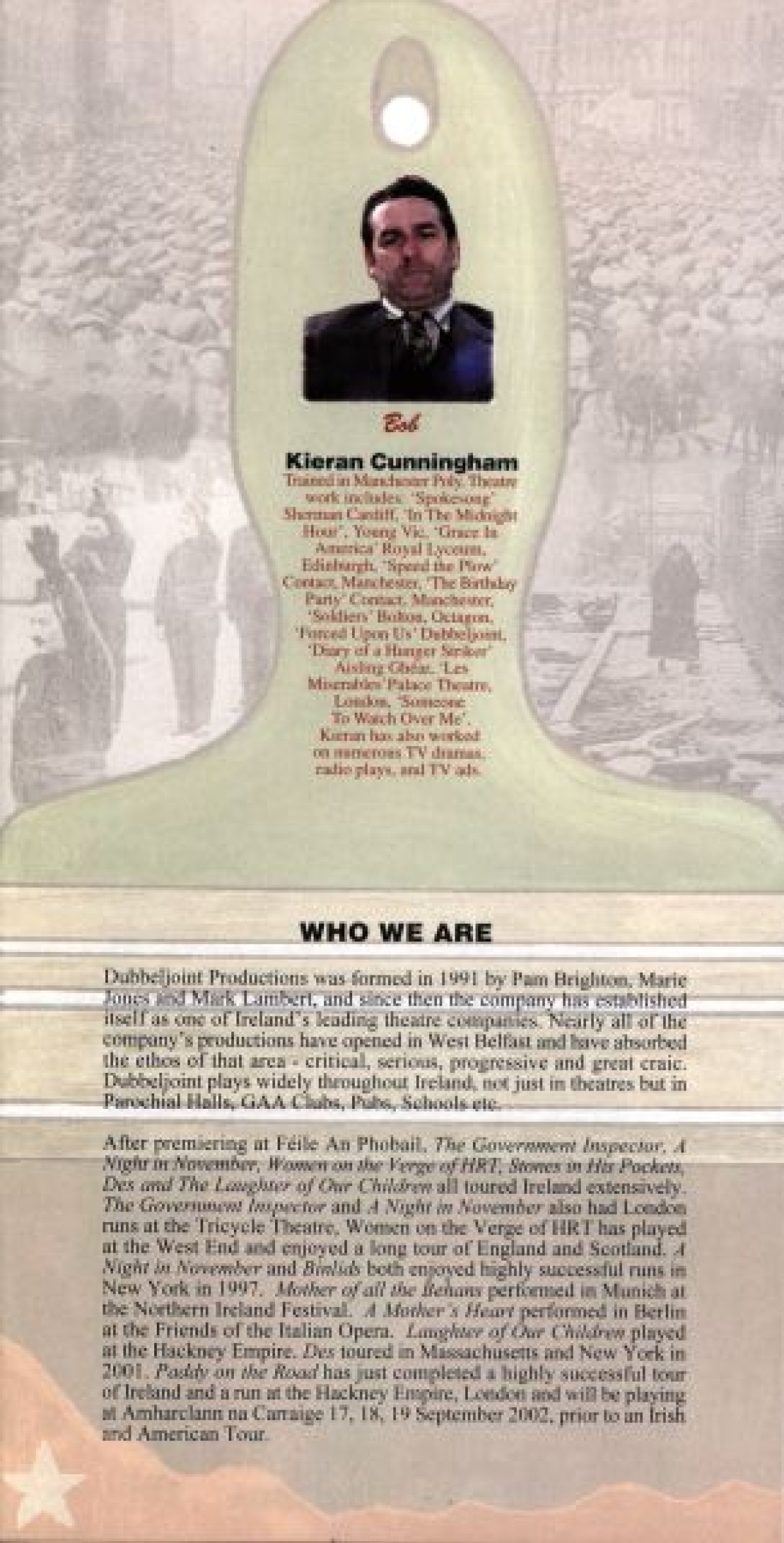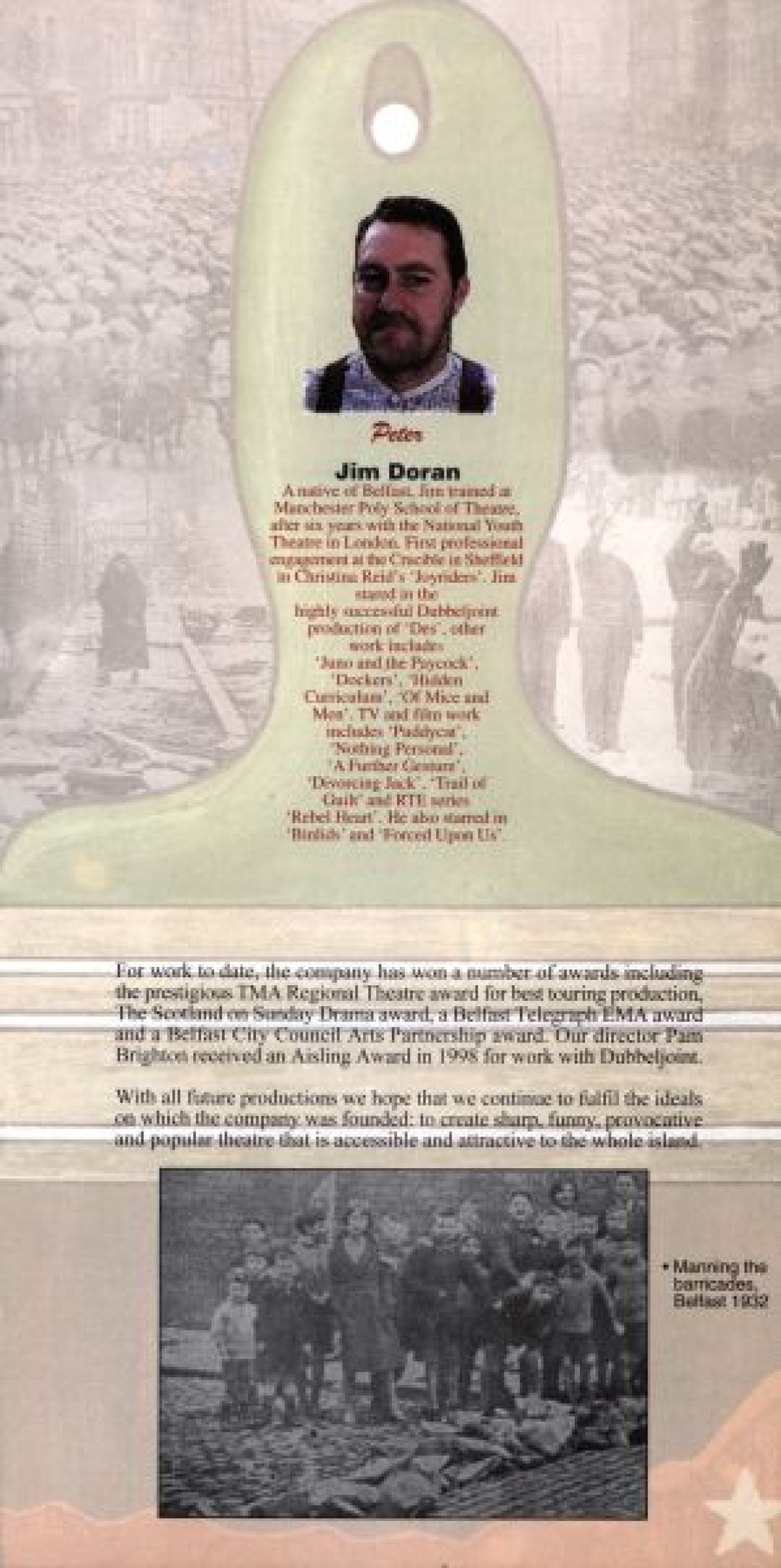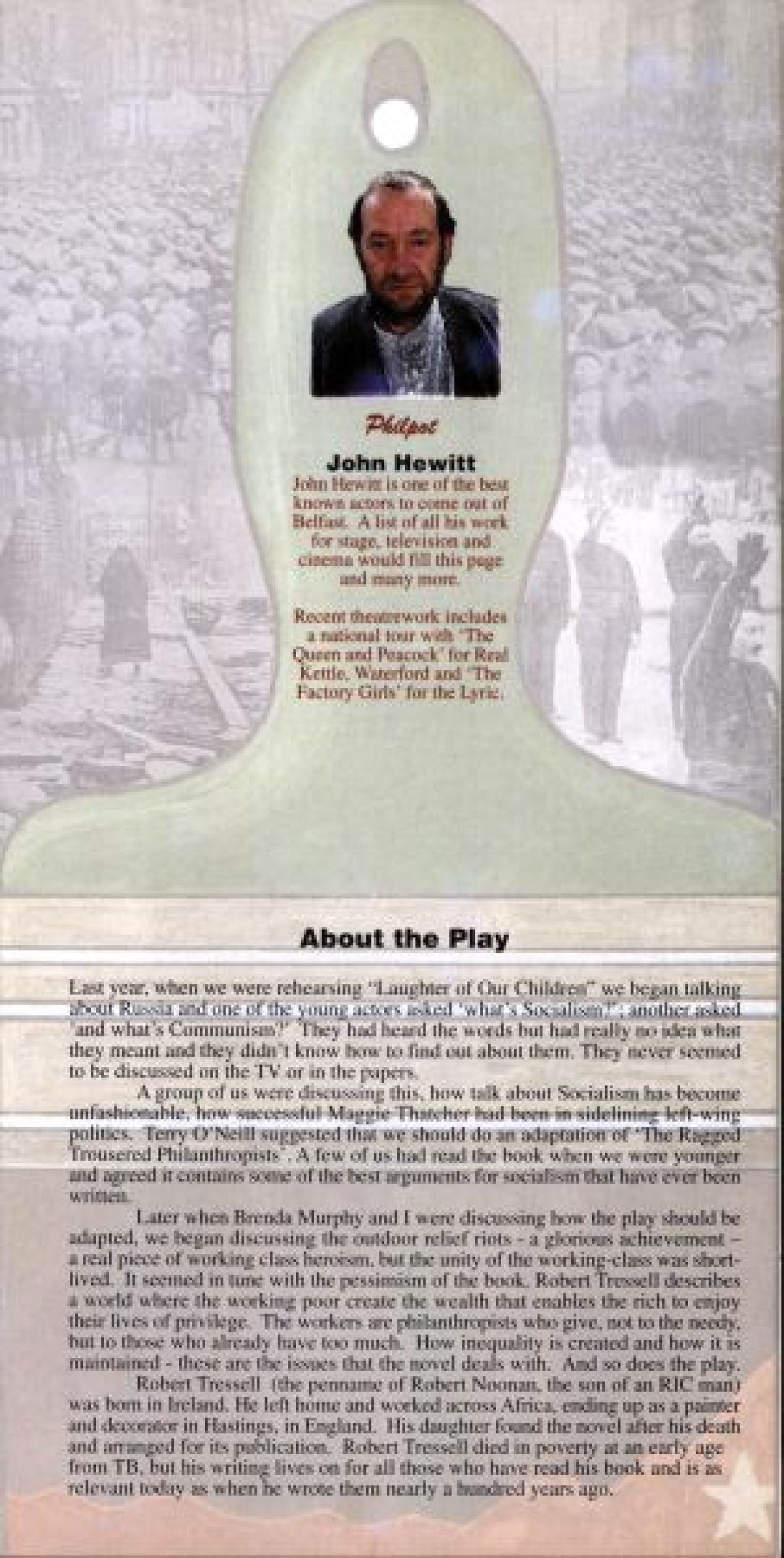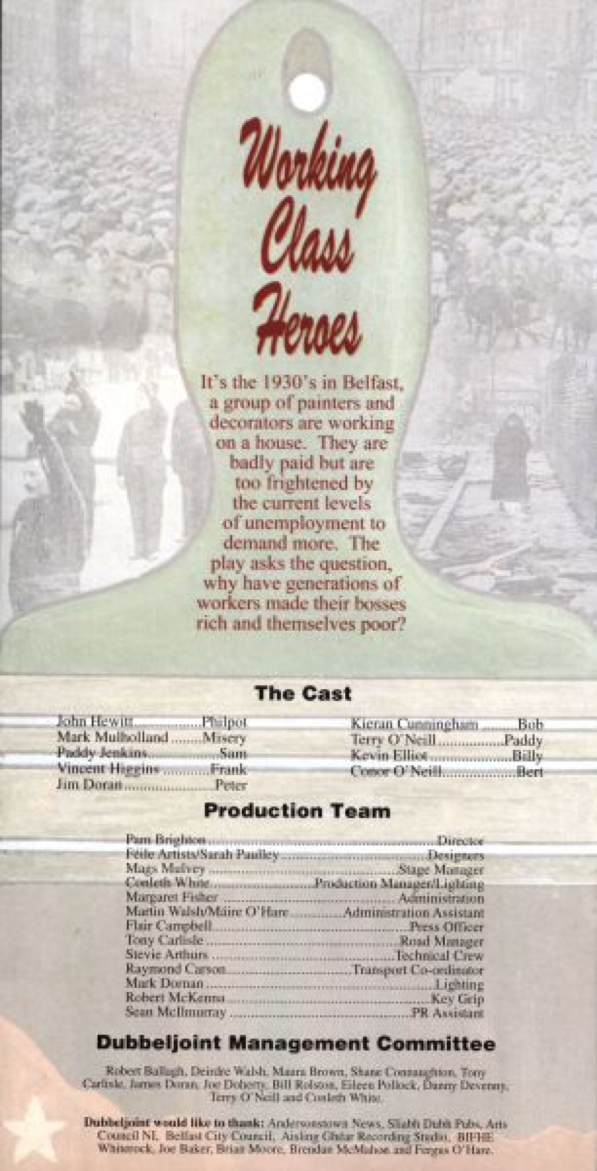 Programme for "Working Class Heroes", a stage adaptation of Robert Tressell's "Ragged Trousered Philanthopists". Written by Brenda Murphy, directed by Pam Brighton for DubbelJoint.